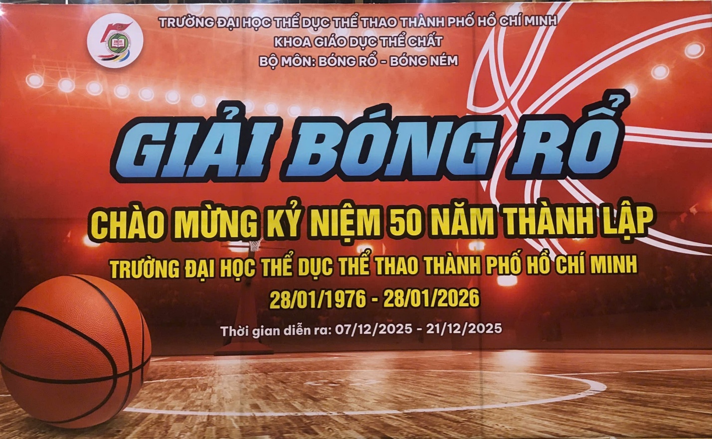 Hòa trong không khí thi đua sôi nổi hướng tới chuỗi hoạt động kỷ niệm 50 năm thành lập Trường Đại học Thể dục Thể thao TP. Hồ Chí Minh, Bộ môn Bóng rổ – Khoa Giáo dục Thể chất đã trang trọng khai mạc Giải Bóng rổ Sinh viên chuyên sâu năm 2025, diễn ra từ ngày 07/12/2025 đến ngày 21/12/2025 tại Nhà thi đấu Bóng rổ của Trường. Đây là giải đấu thường niên nhưng mang dấu ấn đặc biệt trong năm chào mừng sự kiện trọng đại – cột mốc nửa thế kỷ hình thành và phát triển của nhà trường.
