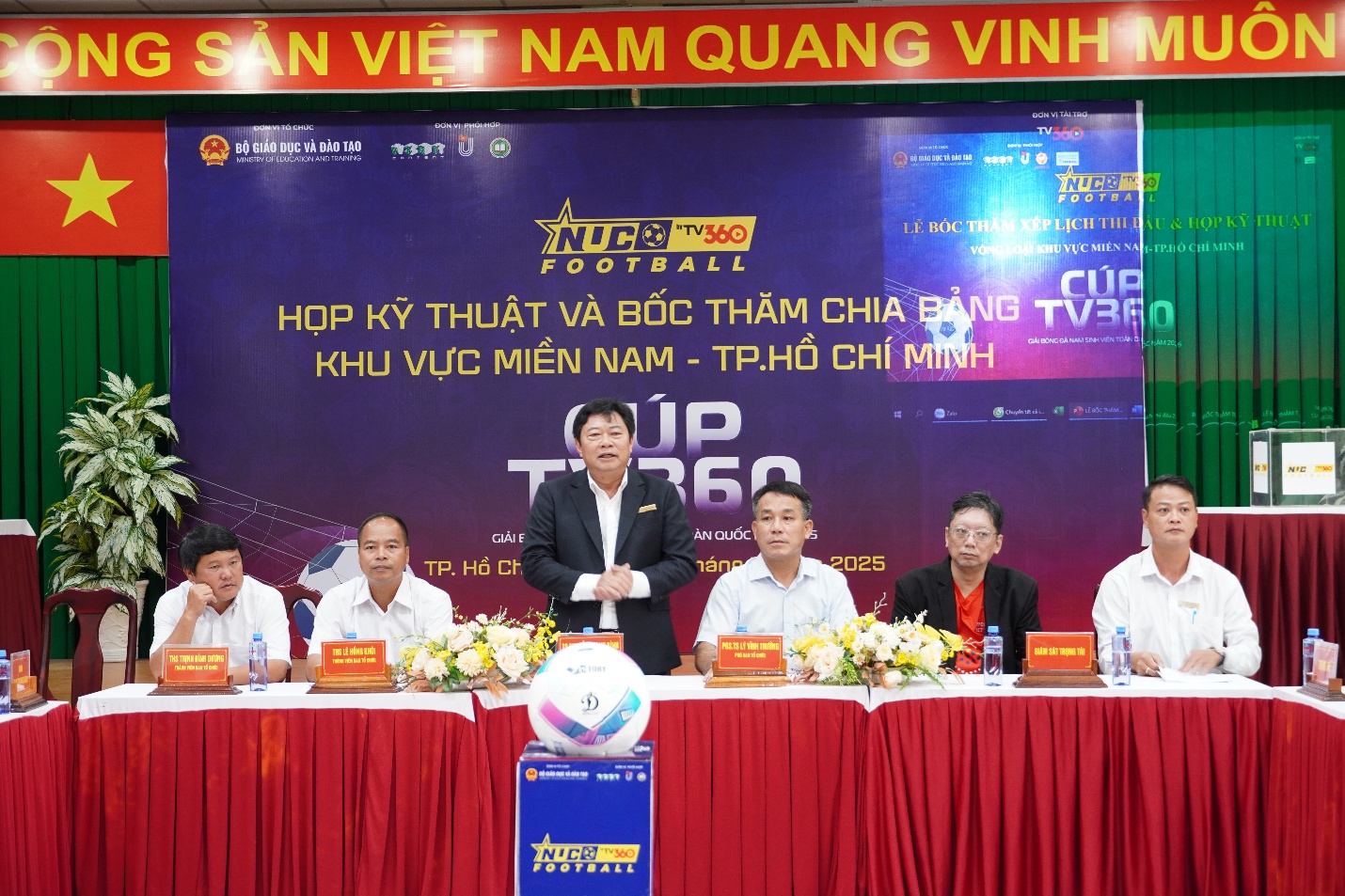 Đại diện Ban Tổ chức – TS. Nguyễn Thanh Bình – P. Hiệu trưởng,Trường Đại học Thể dục Thể thao Thành phố Hồ Chí Minh, đơn vị đăng cai, cho biết: Giải bóng đá nam sinh viên toàn quốc Cúp TV360 do Bộ Giáo dục và Đào tạo chủ trì tổ chức là sân chơi lành mạnh, bổ ích, góp phần thúc đẩy phong trào “Rèn luyện thân thể theo gương Bác Hồ vĩ đại”, đồng thời khơi dậy niềm đam mê thể thao, tinh thần thi đấu trung thực, cao thượng và ý chí vượt lên chính mình của sinh viên cả nước. Trường Đại học Thể dục Thể thao Thành phố Hồ Chí Minh vô cùng vinh dự được đăng cai tổ chức vòng loại khu vực phía Nam, Giải Bóng đá nam sinh viên toàn quốc – Cúp TV360 năm 2025. Đây không chỉ là một sự kiện thể thao quan trọng mà còn là ngày hội của sinh viên Việt Nam, nơi tinh thần thể thao, khát vọng cống hiến và tình đoàn kết giữa các trường được lan tỏa mạnh mẽ. Với vai trò là đơn vị đăng cai, Trường Đại học Thể dục Thể thao TP. Hồ Chí Minh đã chuẩn bị chu đáo về cơ sở vật chất, sân bãi, công tác tổ chức, hậu cần và an ninh, nhằm tạo điều kiện tốt nhất để các đội bóng thi đấu trong môi trường công bằng, chuyên nghiệp và an toàn.