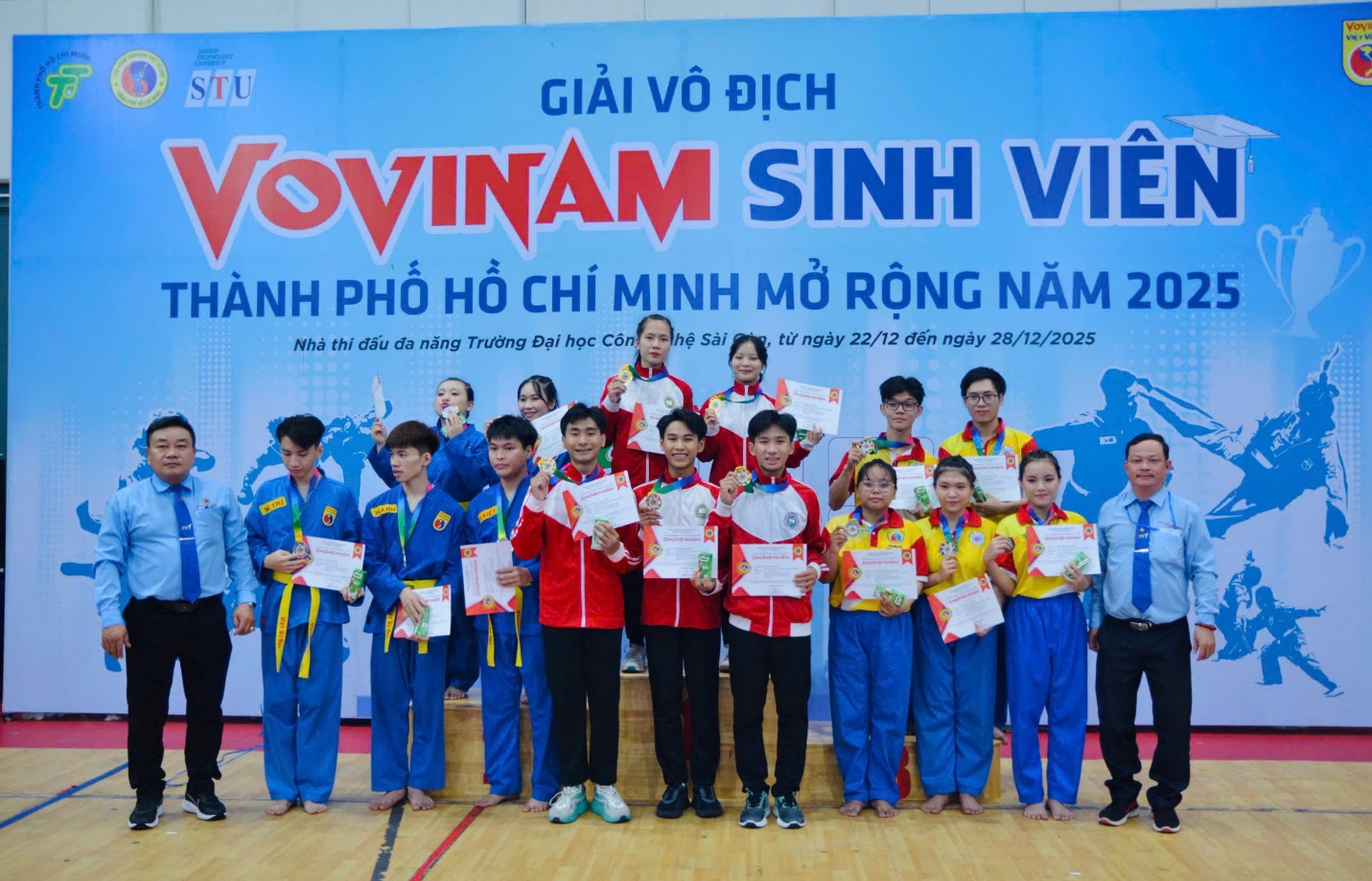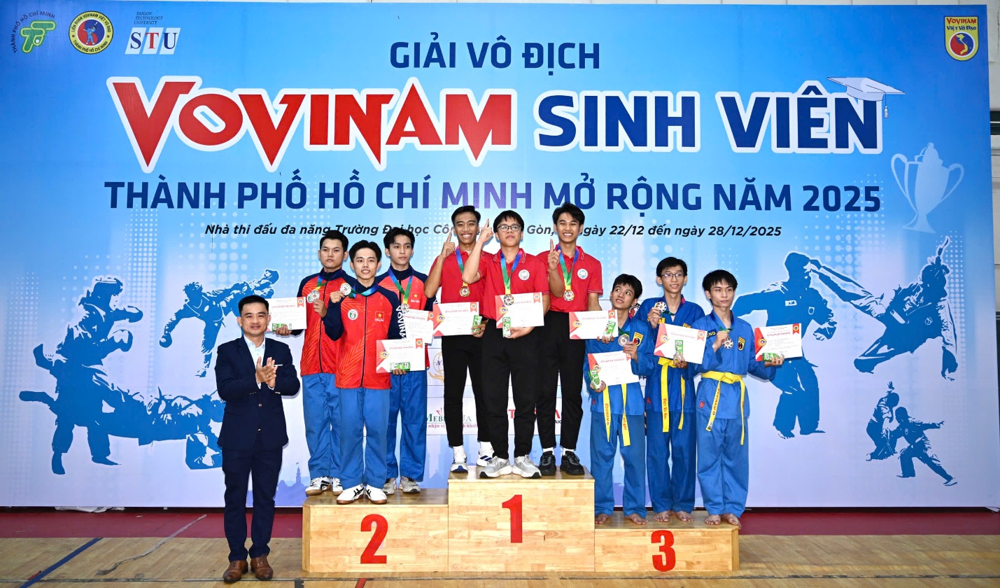 Từ ngày 22/12 đến 28/12/2025, tại Nhà thi đấu đa năng Trường Đại học Công nghệ Sài Gòn (STU), Giải Vô địch Vovinam Sinh viên TP. Hồ Chí Minh mở rộng năm 2025 đã chính thức diễn ra trong không khí sôi nổi, chuyên nghiệp và đầy tính cạnh tranh. Giải đấu năm nay quy tụ 27 trường đại học, học viện, cao đẳng trên địa bàn TP. Hồ Chí Minh và các địa phương lân cận, với gần 700 lãnh đội, huấn luyện viên và vận động viên sinh viên tham gia tranh tài ở các nội dung Quyền, Võ nhạc và Đối kháng, từ hệ phong trào đến hệ nâng cao.