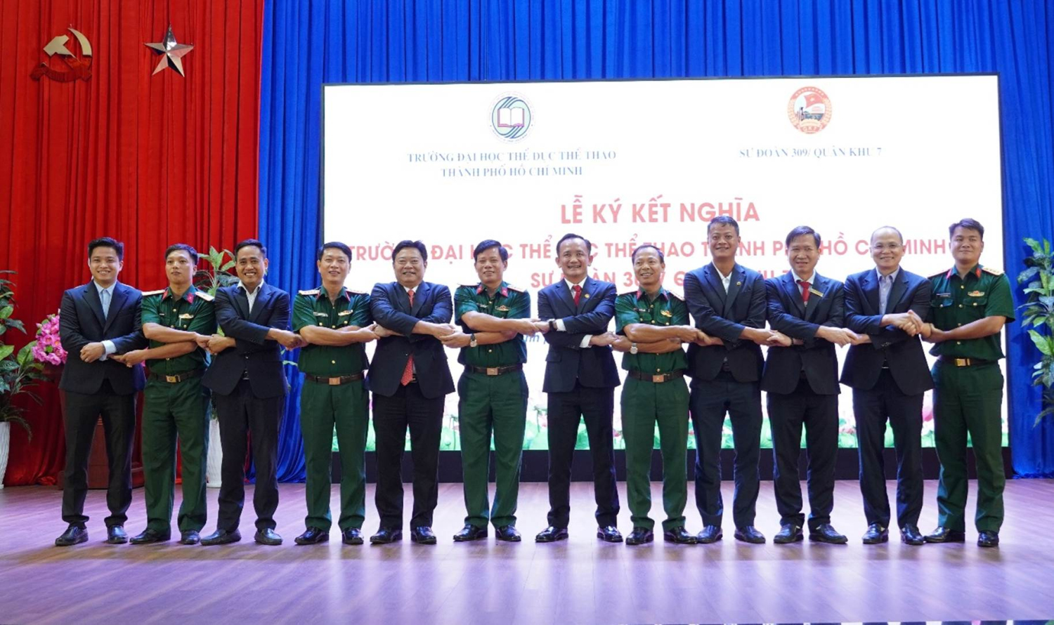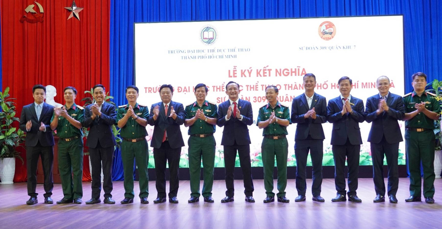 Chiều ngày 18/9/2025, trong không khí trang nghiêm, thắm tình đồng chí, đồng đội và nghĩa tình quân – dân, tại Trường Đại học Thể dục Thể thao Thành phố Hồ Chí Minh đã long trọng diễn ra Lễ ký kết nghĩa giữa Nhà trường và Sư đoàn Bộ binh 309 (Quân khu 7). Đây là sự kiện chính trị – xã hội quan trọng, đánh dấu bước phát triển mới trong mối quan hệ đoàn kết, phối hợp toàn diện giữa một cơ sở giáo dục đại học đầu ngành về thể dục thể thao với một đơn vị quân đội anh hùng.