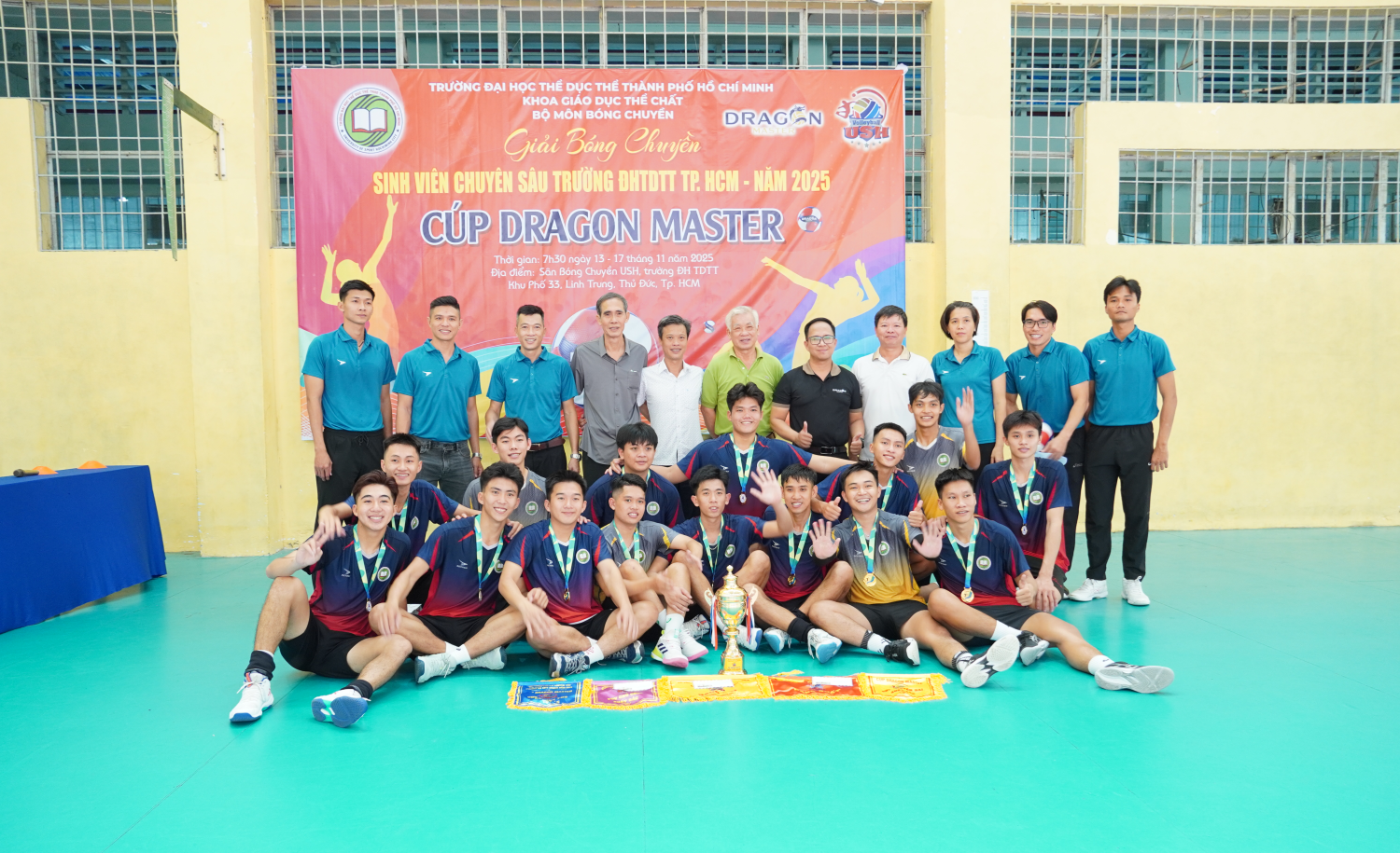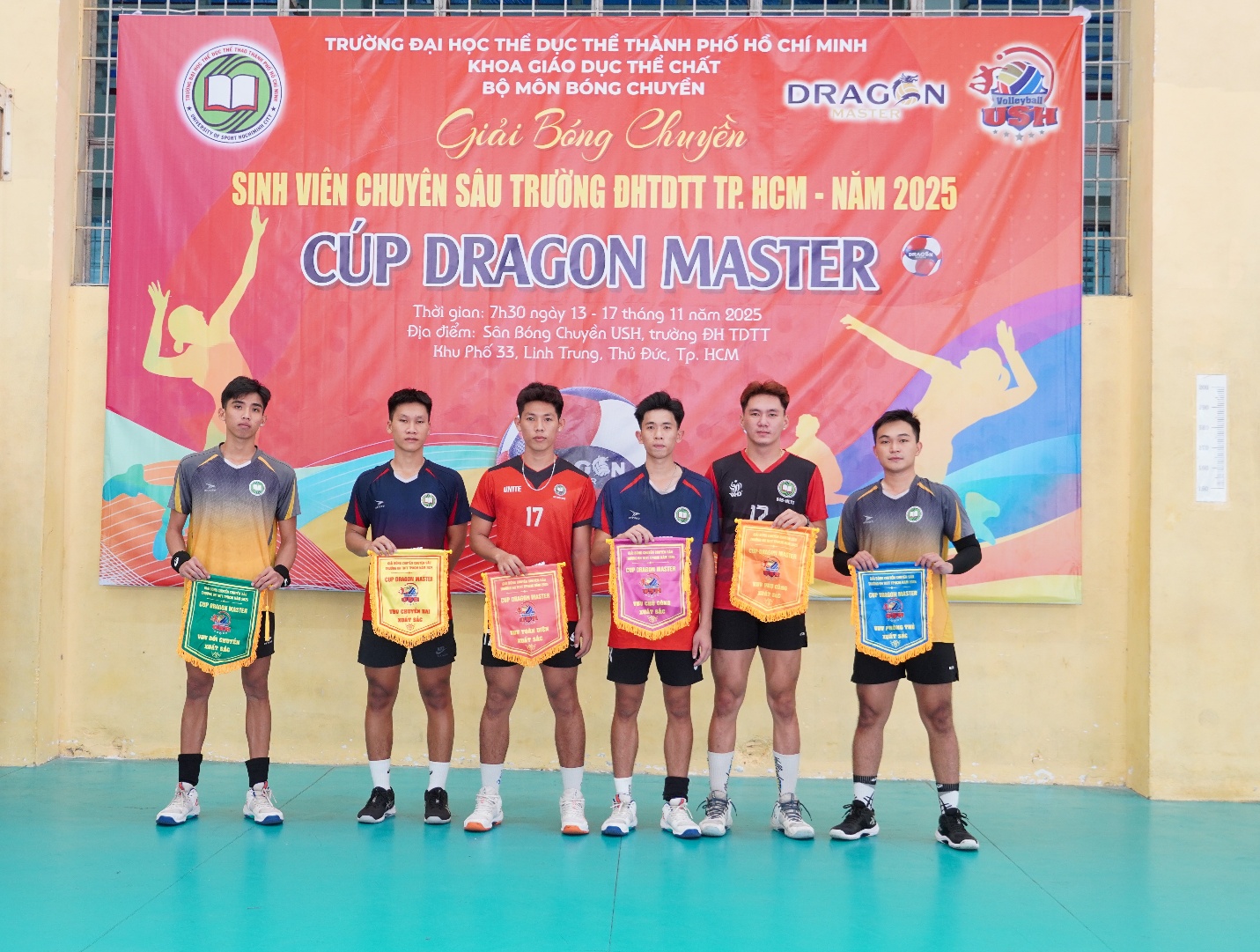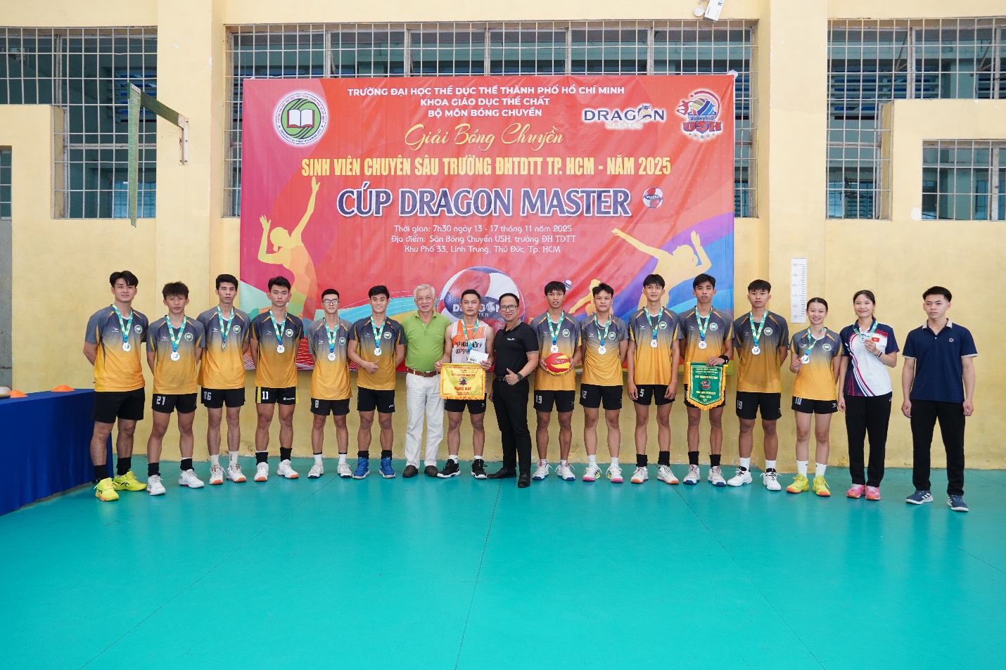 Ngày 18/11/2025, Giải Bóng chuyền Sinh viên Chuyên sâu năm 2025 tranh Cúp DRAGON MASTER đã chính thức khép lại bằng Lễ Bế mạc và Trao giải đầy cảm xúc tại Nhà thi đấu Bóng chuyền Trường Đại học TDTT TP. HCM. Sau 6 ngày tranh tài sôi nổi và hấp dẫn, giải đấu không chỉ tìm ra những nhà vô địch xứng đáng mà còn thắp lên tinh thần thể thao và đoàn kết mạnh mẽ trong sinh viên.