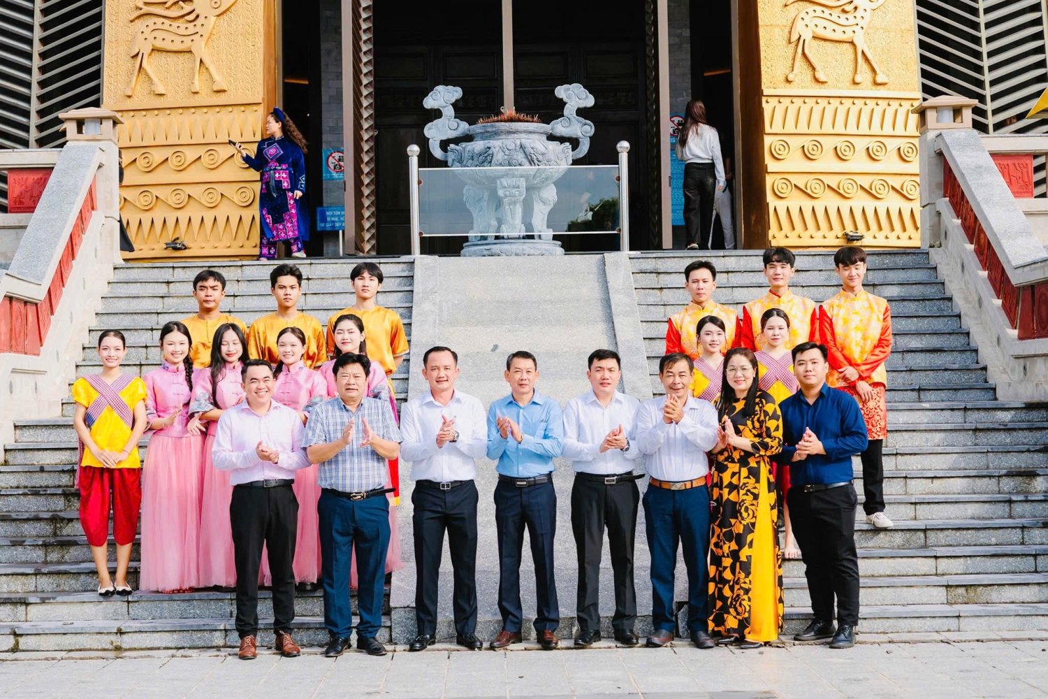 TS. Võ Quốc Thắng – Hiệu trưởng Nhà trường và TS. Nguyễn Thanh Bình – P. Hiệu trưởng Nhà trường chụp hình lưu niệm cùng lãnh đạo các đơn vị và các bạn sinh viên