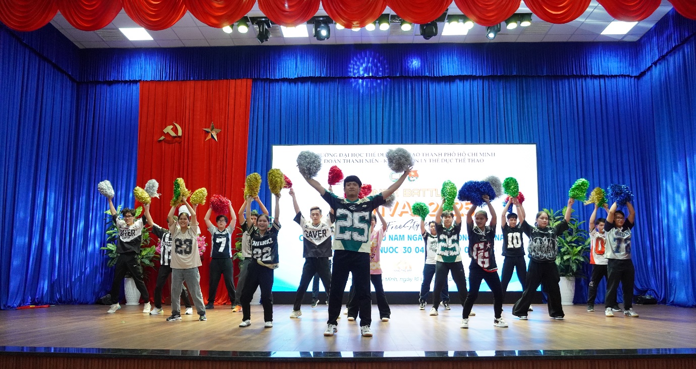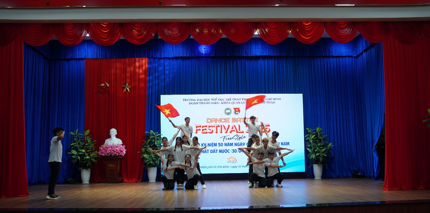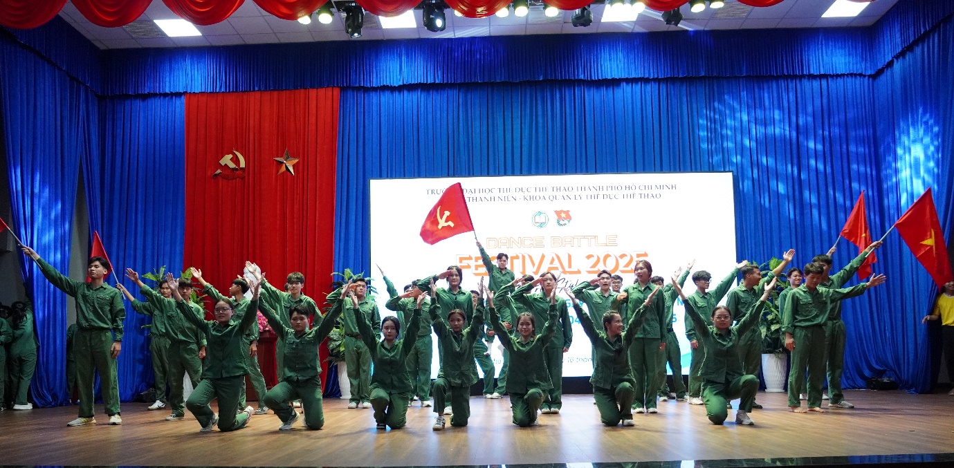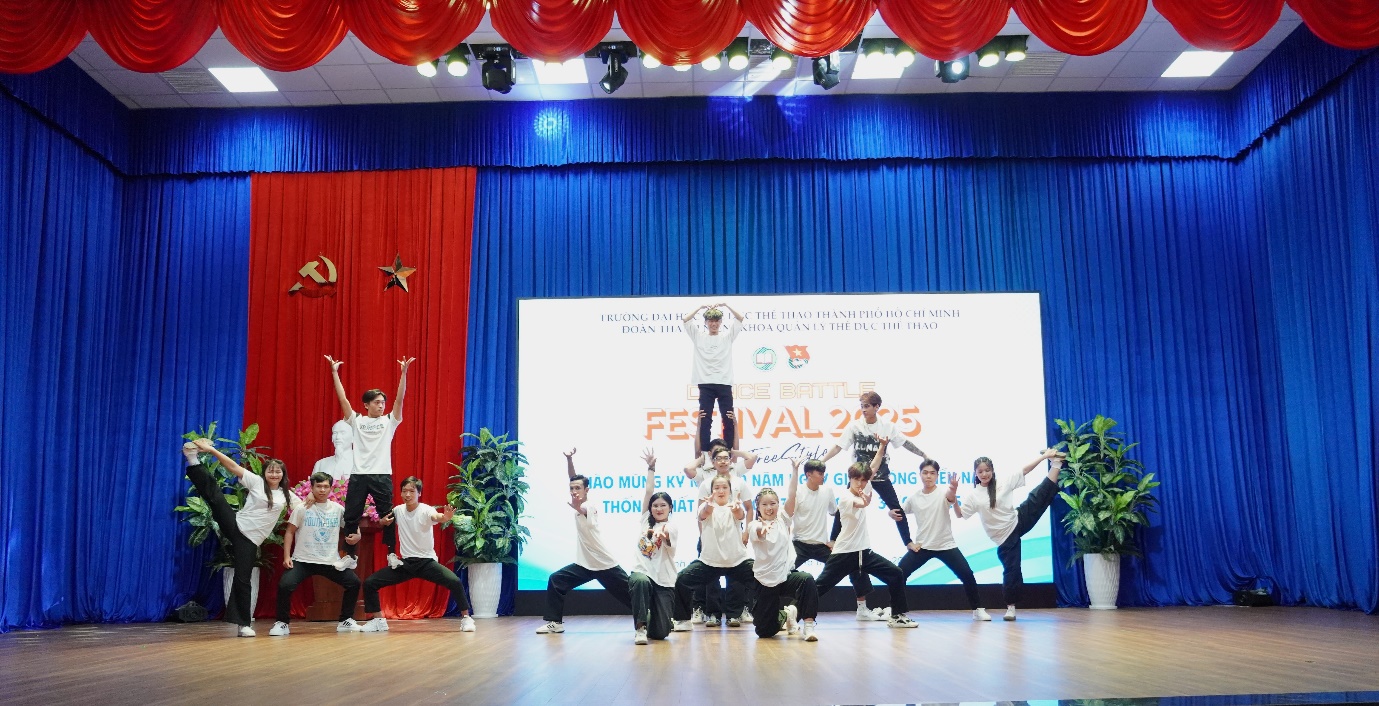 Hòa trong không khí thiêng liêng hướng tới kỷ niệm 50 năm Ngày Giải phóng miền Nam, thống nhất đất nước (30/4/1975 – 30/4/2025), Khoa Quản lý Thể dục Thể thao – Trường Đại học Thể dục Thể thao TP. Hồ Chí Minh đã tổ chức thành công Giải DANCE BATTLE FESTIVAL 2025, thu hút sự tham gia đông đảo của sinh viên đam mê nghệ thuật nhảy hiện đại; khiêu vũ và Dance Sport…