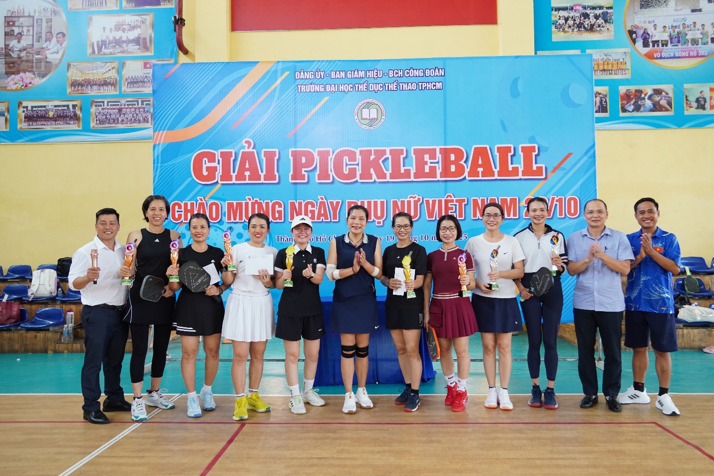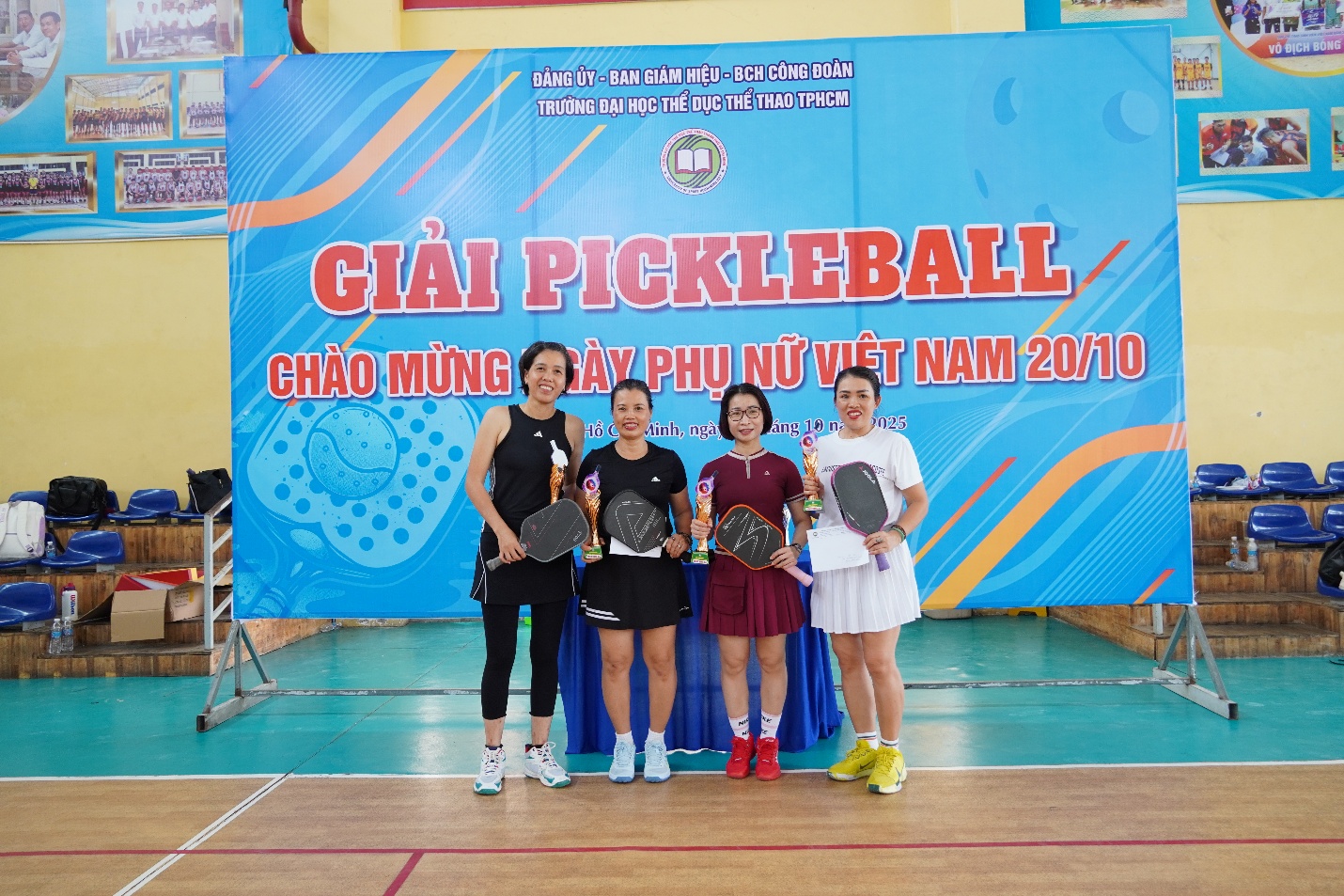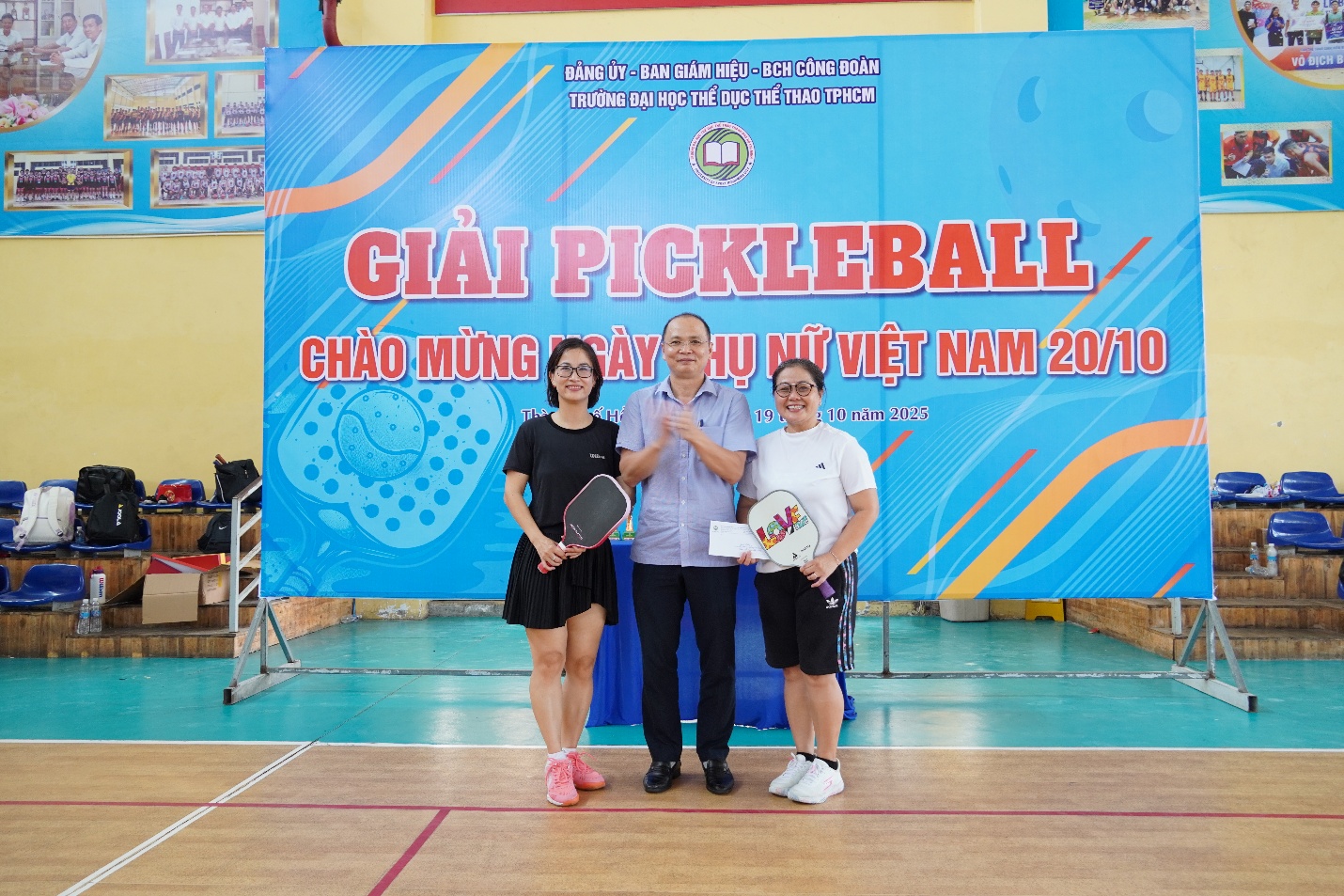 Hòa trong không khí hân hoan của cả nước hướng về kỷ niệm 95 năm Ngày thành lập Hội Liên hiệp Phụ nữ Việt Nam (20/10/1930 – 20/10/2025) và 15 năm Ngày Phụ nữ Việt Nam (20/10/2010 – 20/10/2025), sáng ngày 19/10/2025, Công đoàn Trường Đại học Thể dục Thể thao TP. Hồ Chí Minh đã tổ chức Giải thi đấu Pickleball sôi nổi, thu hút đông đảo nữ công đoàn viên tham gia. Đây không chỉ là hoạt động thể thao ý nghĩa mà còn là dịp để tôn vinh, tri ân và khích lệ tinh thần của đội ngũ nữ cán bộ, giảng viên, nhân viên – những người luôn tận tụy, bản lĩnh và đầy nhiệt huyết trong sự nghiệp giáo dục, đào tạo và nghiên cứu khoa học của Nhà trường.