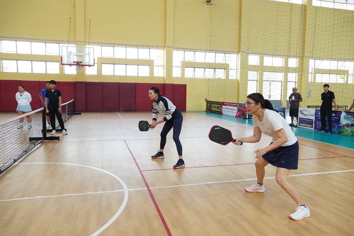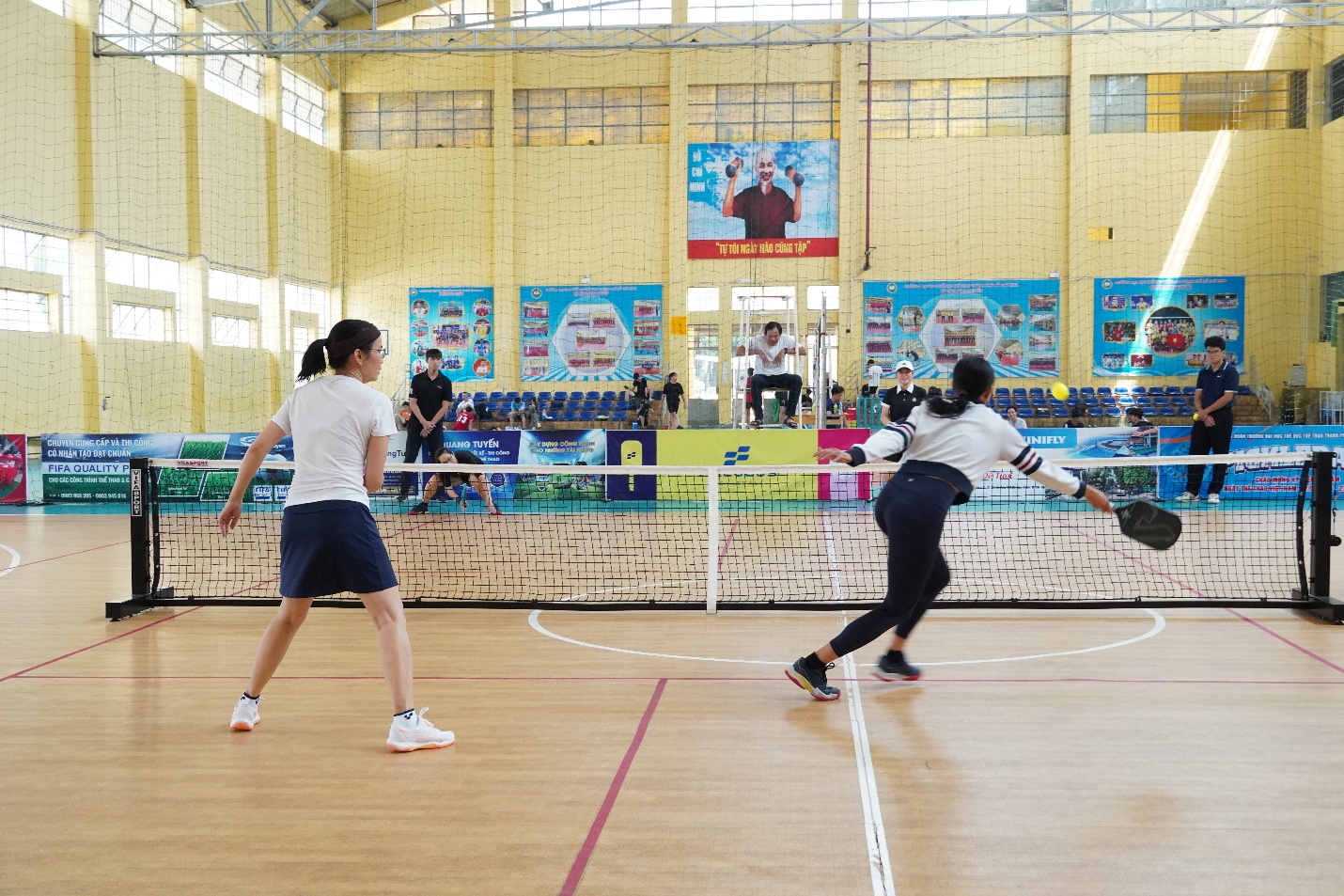 Pickleball – môn thể thao kết hợp tinh hoa của cầu lông, bóng bàn và quần vợt – được xem là “làn gió mới” trong phong trào rèn luyện thể thao của cán bộ, viên chức nhà trường. Với đặc điểm dễ tiếp cận, phù hợp với nhiều lứa tuổi và tạo tương tác cao giữa người chơi, Pickleball nhanh chóng trở thành tâm điểm thu hút và mang đến nhiều tiếng cười, nhiều pha bóng đẹp mắt, khéo léo.