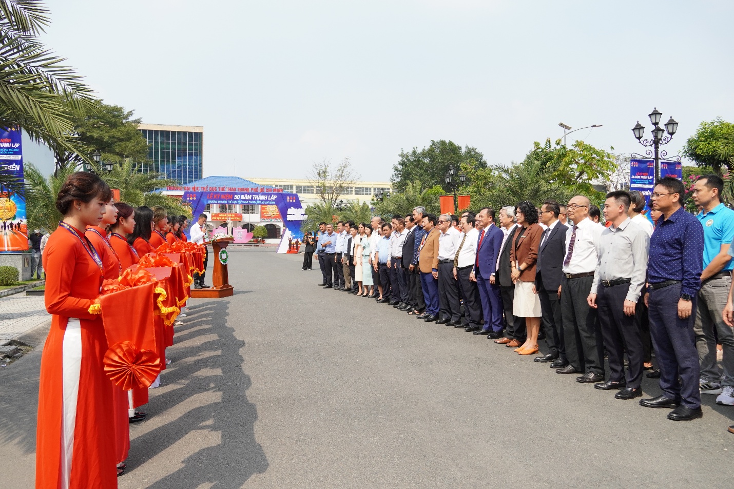 Buổi lễ diễn ra trong niềm tự hào chung của các thế hệ cán bộ, giảng viên, học viên, sinh viên Nhà trường; đồng thời hòa cùng khí thế thi đua sôi nổi chào mừng những sự kiện chính trị trọng đại của đất nước. Đây không chỉ là một nghi lễ khánh thành công trình, mà còn là dịp để nhìn lại, tôn vinh và tiếp nối những giá trị bền vững đã làm nên bản sắc của Trường Đại học Thể dục Thể thao TP. Hồ Chí Minh suốt 50 năm qua.Vườn tượng thể thao là công trình được hình thành từ sự chung tay, góp sức, đồng lòng của tập thể cán bộ, viên chức, người lao động cùng các thế hệ cựu học viên, sinh viên Nhà trường qua nhiều thời kỳ. Mỗi tác phẩm không chỉ tái hiện sinh động hình ảnh đặc trưng của các môn thể thao, mà còn hàm chứa chiều sâu tư tưởng, tôn vinh tinh thần vượt khó, ý chí kiên cường, khát vọng vươn lên và những giá trị nhân văn cao đẹp của thể thao chân chính.TS. Võ Quốc Thắng lãnh đạo Nhà trường khẳng định: Trải qua 50 năm hình thành và phát triển, Trường Đại học Thể dục Thể thao TP. Hồ Chí Minh luôn kiên định sứ mệnh đào tạo nguồn nhân lực chất lượng cao cho ngành thể dục thể thao; không ngừng đổi mới tư duy, nâng cao chất lượng đào tạo ở các bậc học từ cử nhân, thạc sĩ đến tiến sĩ; từng bước khẳng định vị thế là cơ sở đào tạo, nghiên cứu khoa học thể dục thể thao uy tín hàng đầu khu vực phía Nam và cả nước. Việc khánh thành Vườn tượng thể thao là minh chứng sinh động cho quá trình tích lũy, kế thừa và phát triển ấy.