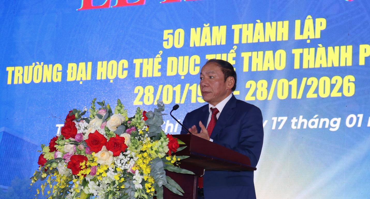 Phát biểu chúc mừng và chỉ đạo tại buổi lễ, đồng chí Nguyễn Văn Hùng – Ủy viên Ban Chấp hành Trung ương Đảng, Bộ trưởng Bộ Văn hóa, Thể thao và Du lịch ghi nhận và biểu dương những đóng góp to lớn của Trường Đại học Thể dục Thể thao TP. Hồ Chí Minh trong suốt 50 năm qua. Nhà trường đã có nhiều đóng góp quan trọng trong công tác đào tạo giáo viên, huấn luyện viên, cán bộ quản lý thể thao và bồi dưỡng nhiều thế hệ vận động viên xuất sắc cho thể thao Việt Nam.