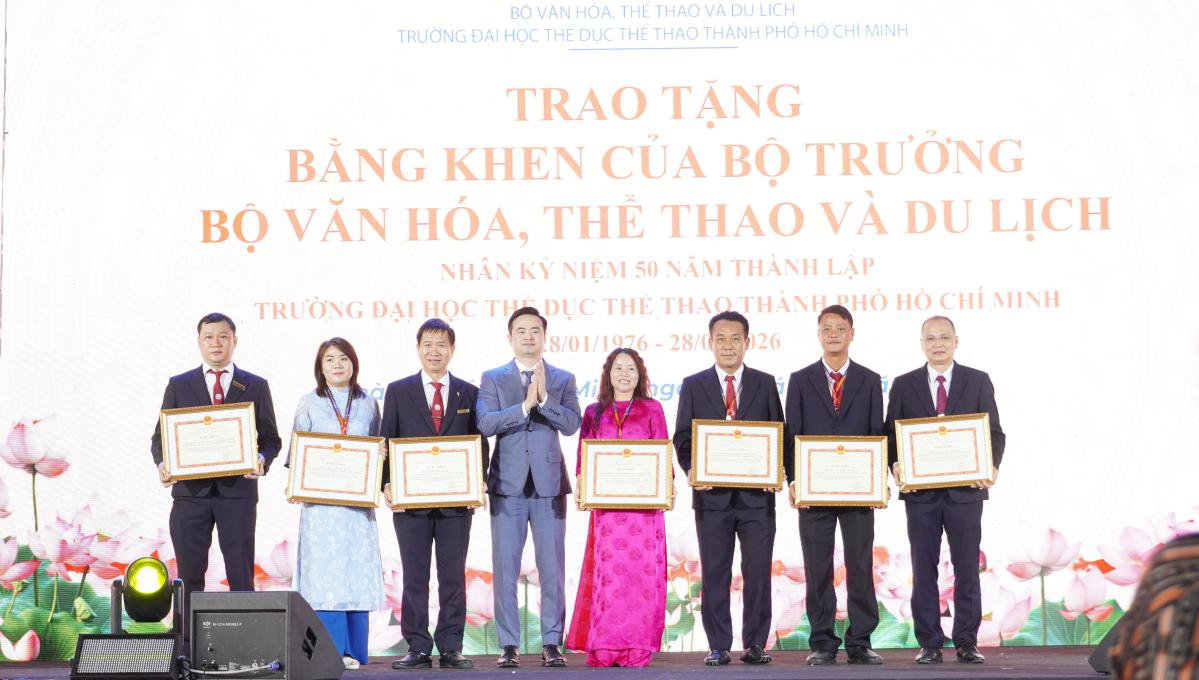 Cũng nhân dịp Lễ kỷ niệm 50 năm ngày thành lập Trường Đại học Thể dục thể thao Thành Phố Hồ Chí Minh ( 1976 – 2026 ), Bộ trưởng Bộ Văn hóa, Thể thao và Du lịch ; Chủ tịch UBND TP. Hồ Chí Minh và Liên đoan Lao động TP.HCM tặng Bằng khendành cho các tập thể, cá nhân có thành tích xuất sắc.