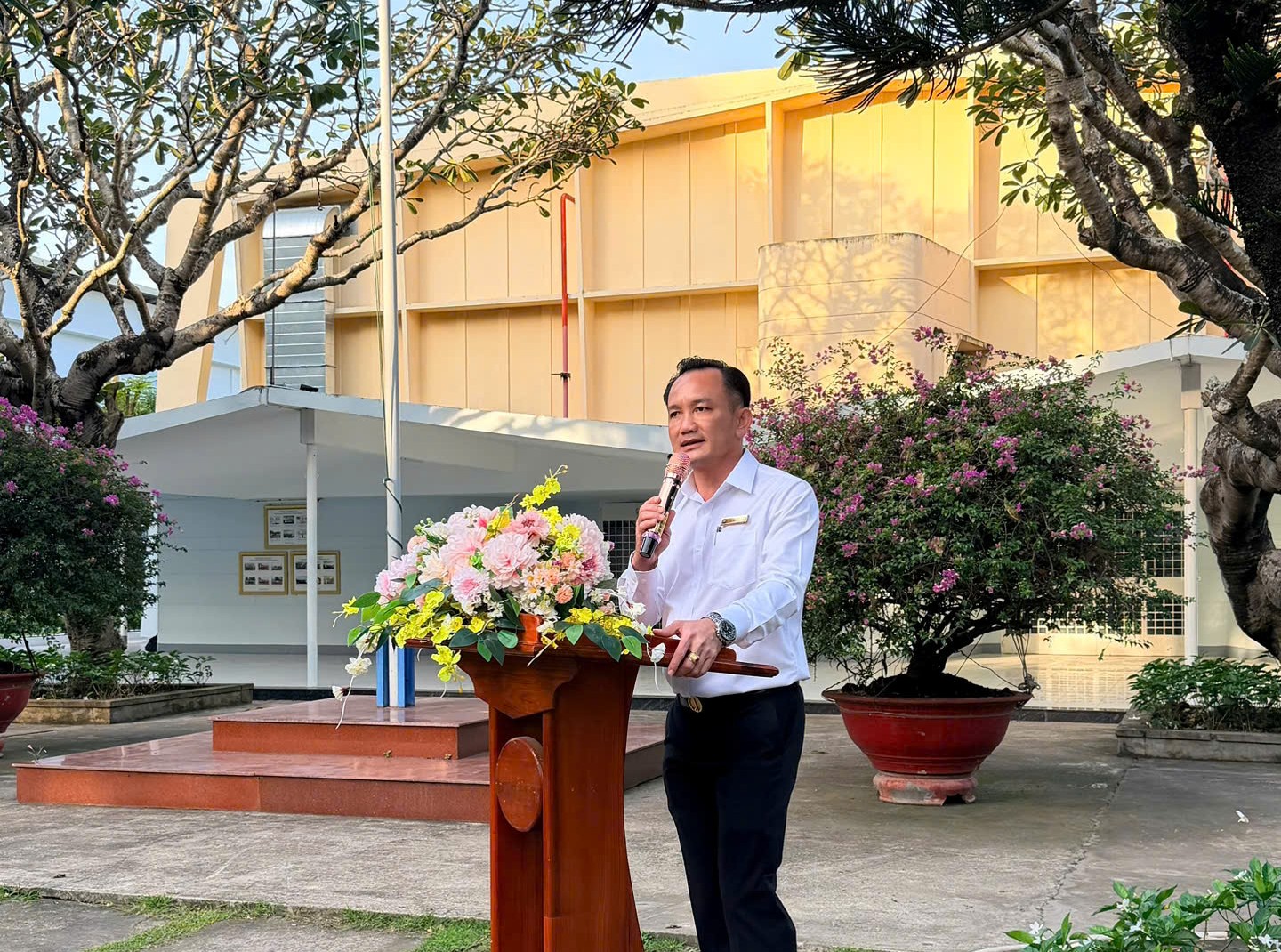 TS. Võ Quốc Thắng – Hiệu trưởng Nhà trường phát biểu gửi gắm thông điệp đầy cảm xúc