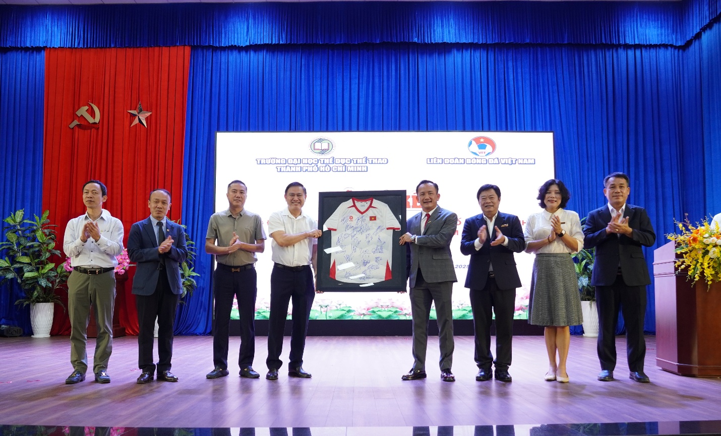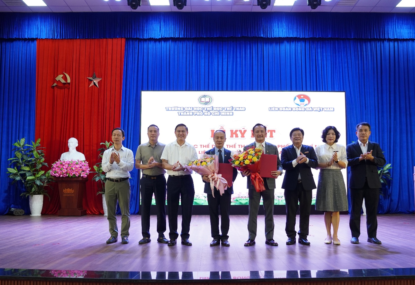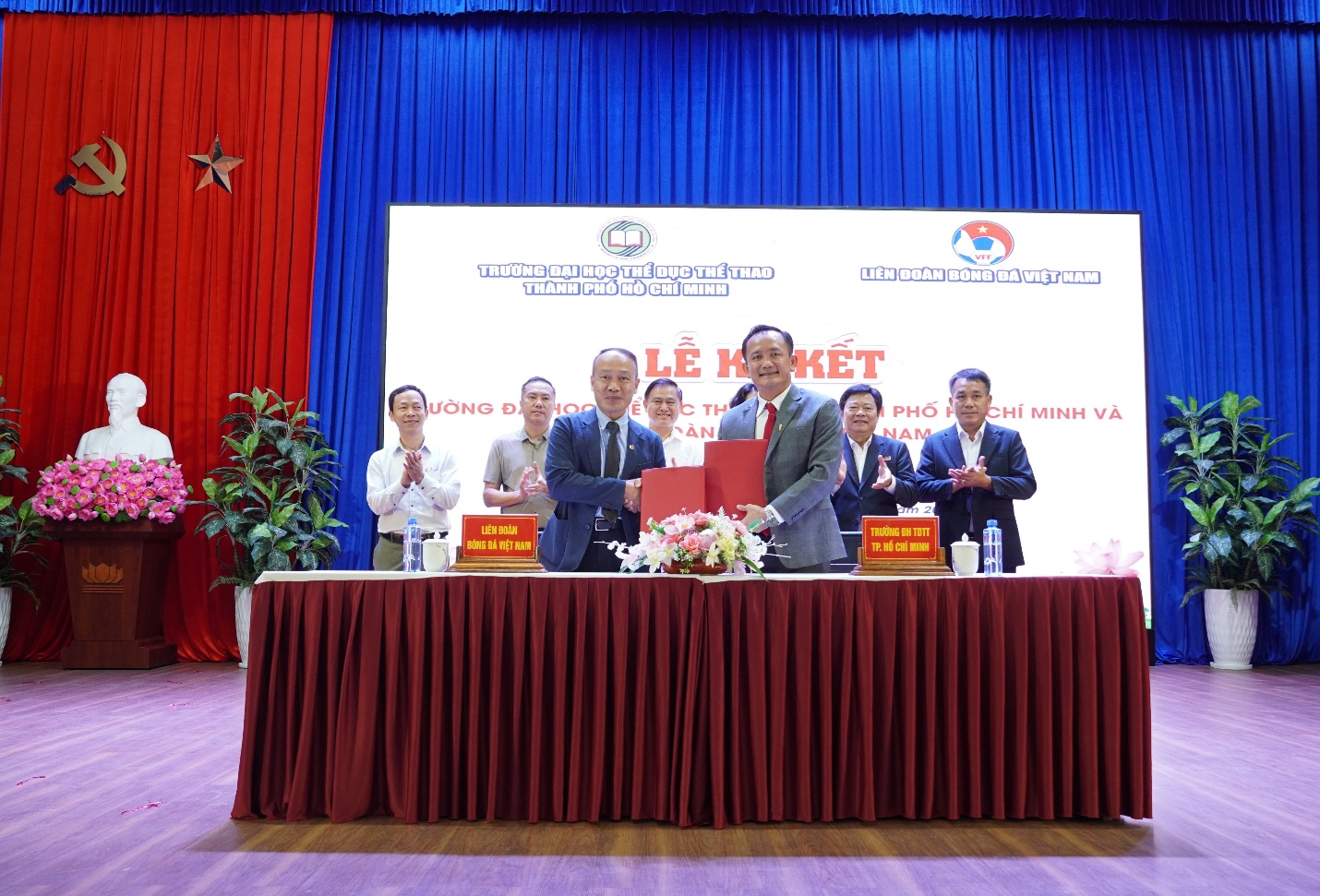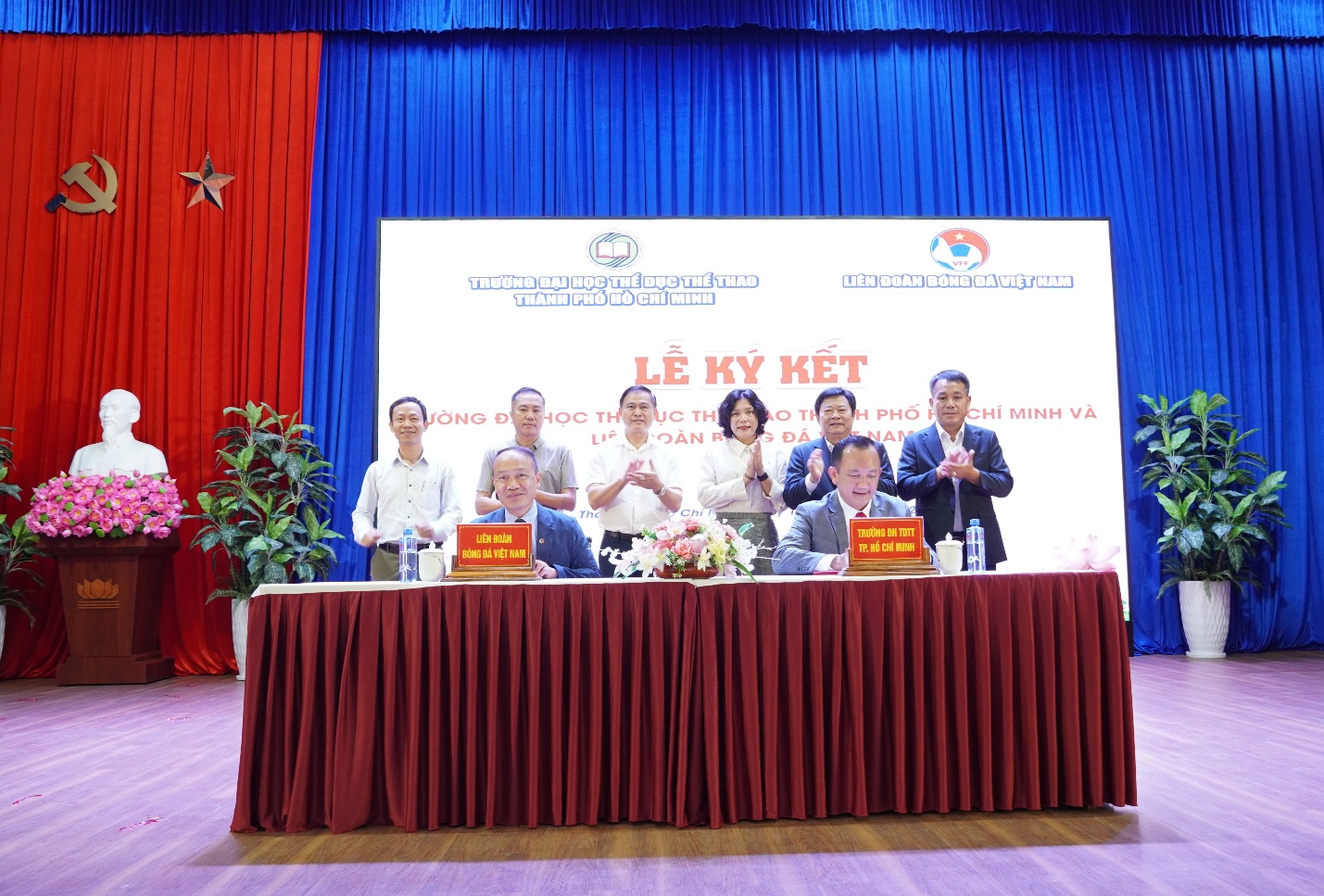 Hợp tác chiến lược giữa học thuật và thể thao chuyên nghiệp Buổi lễ ký kết được tổ chức trọng thể tại Trường Đại học Thể dục Thể thao TP. Hồ Chí Minh, với sự tham dự của lãnh đạo hai đơn vị. Về phía Nhà trường, có TS. Võ Quốc Thắng – Hiệu trưởng, TS. Nguyễn Thanh Bình – Phó Hiệu trưởng, PGS. TS. Nguyễn Thị Mỹ Linh – Phó Hiệu trưởng, PGS. TS. Lý Vĩnh Trường – Trưởng Khoa Huấn luyện Thể thao, TS. Vũ Đình Mai – Trưởng phòng Hành chính Tổng hợp, cùng các giảng viên bộ môn Bóng đá và đông đảo sinh viên Khoa Huấn luyện Thể thao. Về phía Liên đoàn Bóng đá Việt Nam (VFF), có sự hiện diện của ông Trần Anh Tú – Phó Chủ tịch, ông Nguyễn Xuân Vũ – Phó Chủ tịch, ông Nguyễn Văn Phú – Tổng Thư ký, ông Nguyễn Minh Châu – Phó Tổng Thư ký, và ông Hà Nhật Đoàn – Phó Trưởng phòng Truyền thông.