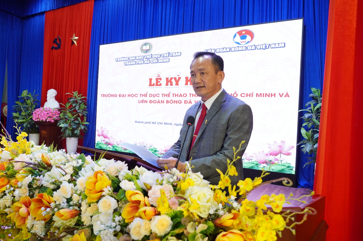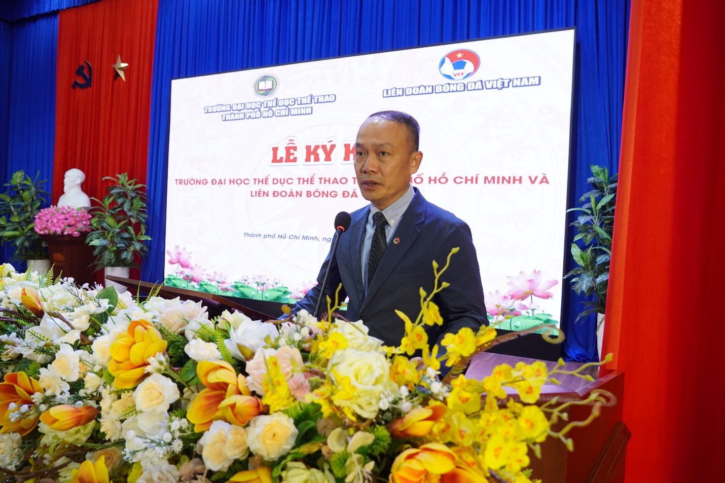Phát biểu tại lễ ký kết, TS. Võ Quốc Thắng – Hiệu trưởng Trường Đại học Thể dục Thể thao TP. Hồ Chí Minh nhấn mạnh: “Liên kết giữa Nhà trường và Liên đoàn Bóng đá Việt Nam là bước đi thiết thực trong việc gắn đào tạo với nhu cầu thực tiễn. Chúng tôi mong muốn góp phần tạo ra thế hệ sinh viên có năng lực, đạo đức và tinh thần chuyên nghiệp, vì một nền bóng đá Việt Nam công bằng, tiến bộ và hội nhập.”