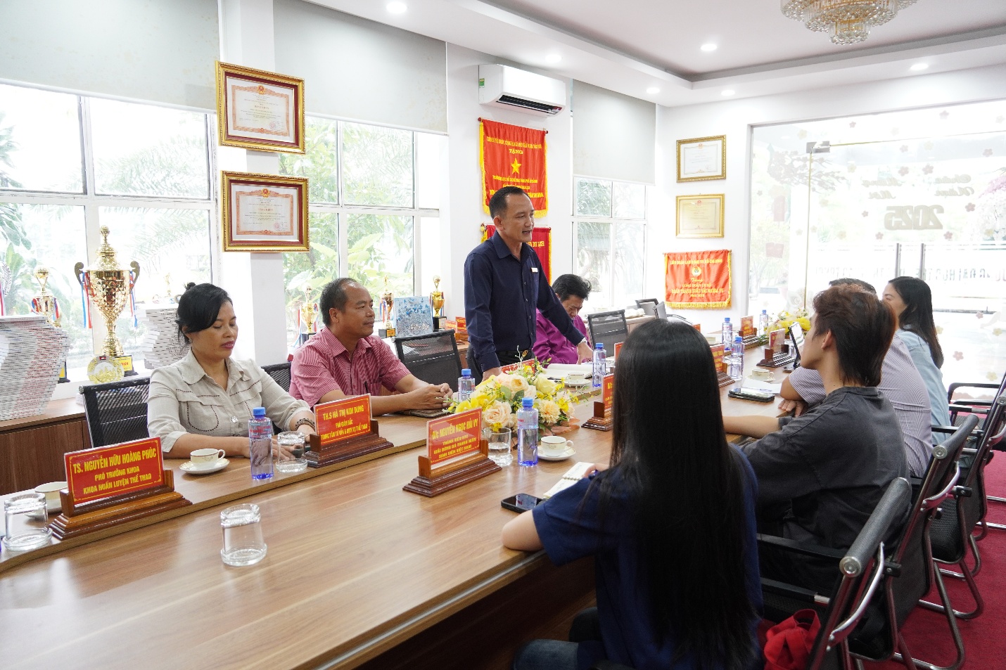 Tiếp và làm việc với đoàn có TS. Võ Quốc Thắng – Hiệu trưởng Nhà trường; TS. Nguyễn Thanh Bình – Phó Hiệu trưởng Nhà trường cùng lãnh đạo các đơn vị chức năng. Về phía Báo Thanh Niên có sự tham dự của ông Trần Quang Tuyến – Ủy viên Ban Tổ chức, phụ trách chuyên môn Giải bóng đá Thanh Niên Sinh viên Việt Nam; bà Tạ Vũ Hà Thi – Trưởng bộ phận sự kiện Báo Thanh Niên, Ủy viên Ban Tổ chức; ông Lê Thành Tài – thành viên Ban Tổ chức; và bà Nguyễn Ngọc Hải Vy – thành viên Ban Tổ chức Giải bóng đá Sinh viên toàn quốc 2025, Cúp TV360.
