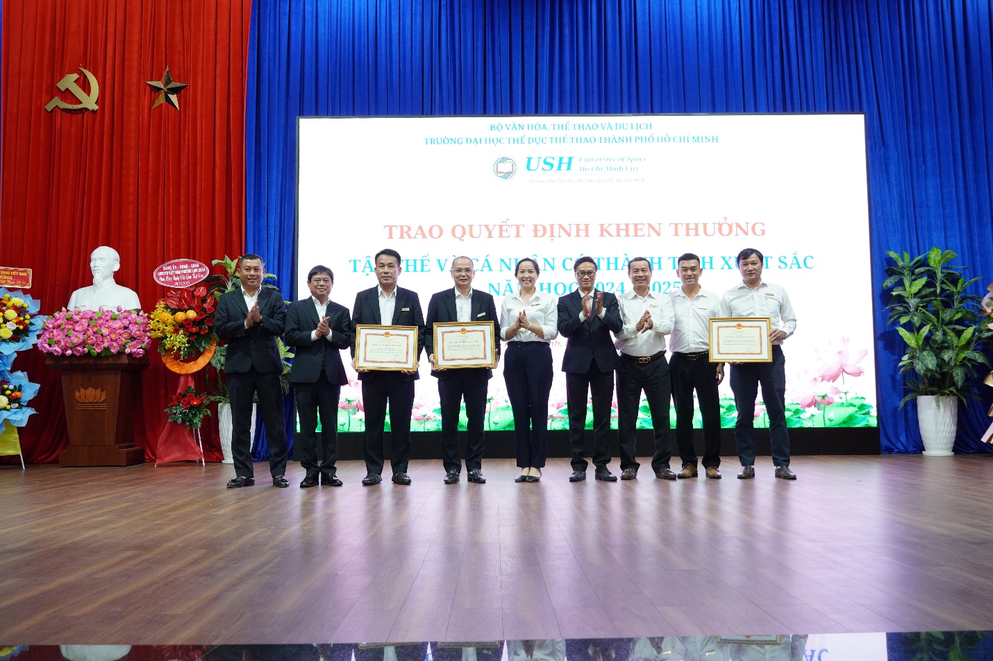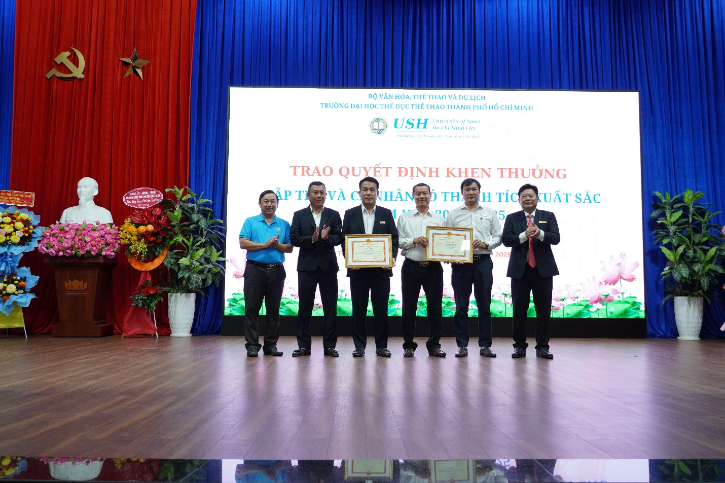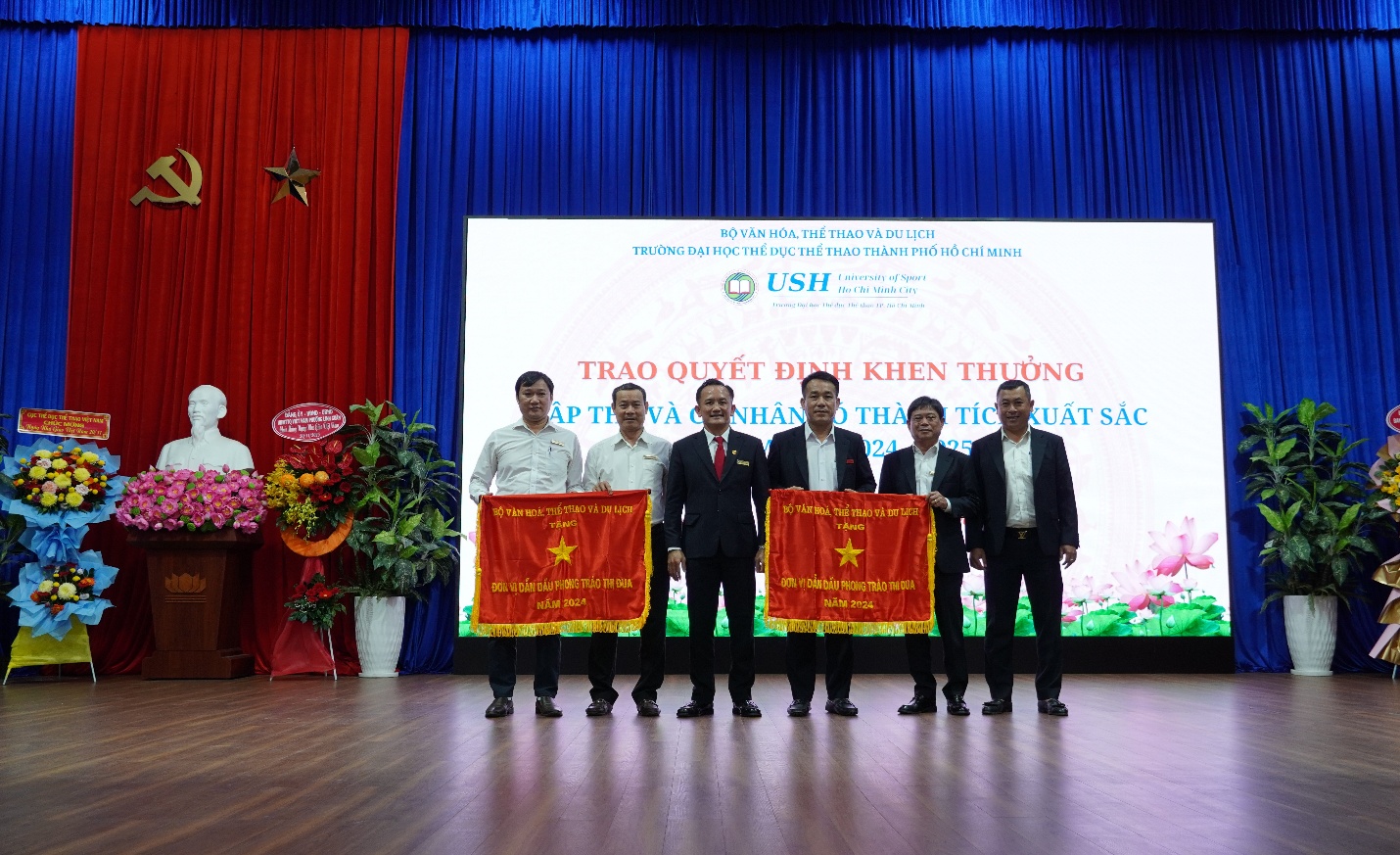 Nhiều phần thưởng cao quý đã được trao, gồm: 02 Cờ Thi đua của Bộ Văn hóa, Thể thao và Du lịch dành cho: Khoa Huấn luyện thể thao và Phòng Khảo thí và Đảm bảo chất lượng giáo dục; Bằng khen của Bộ trưởng Bộ Văn hóa, Thể thao và Du lịch cho các tập thể và cá nhân có thành tích xuất sắc; Giấy khen của Công an TP. Hồ Chí Minh cho các cá nhân có đóng góp tích cực trong công tác phối hợp, đảm bảo an ninh trật tự; Giấy khen của Hiệu trưởng Nhà trường dành cho Giảng viên đạt thành tích cao tại các đấu trường quốc tế trong năm qua.