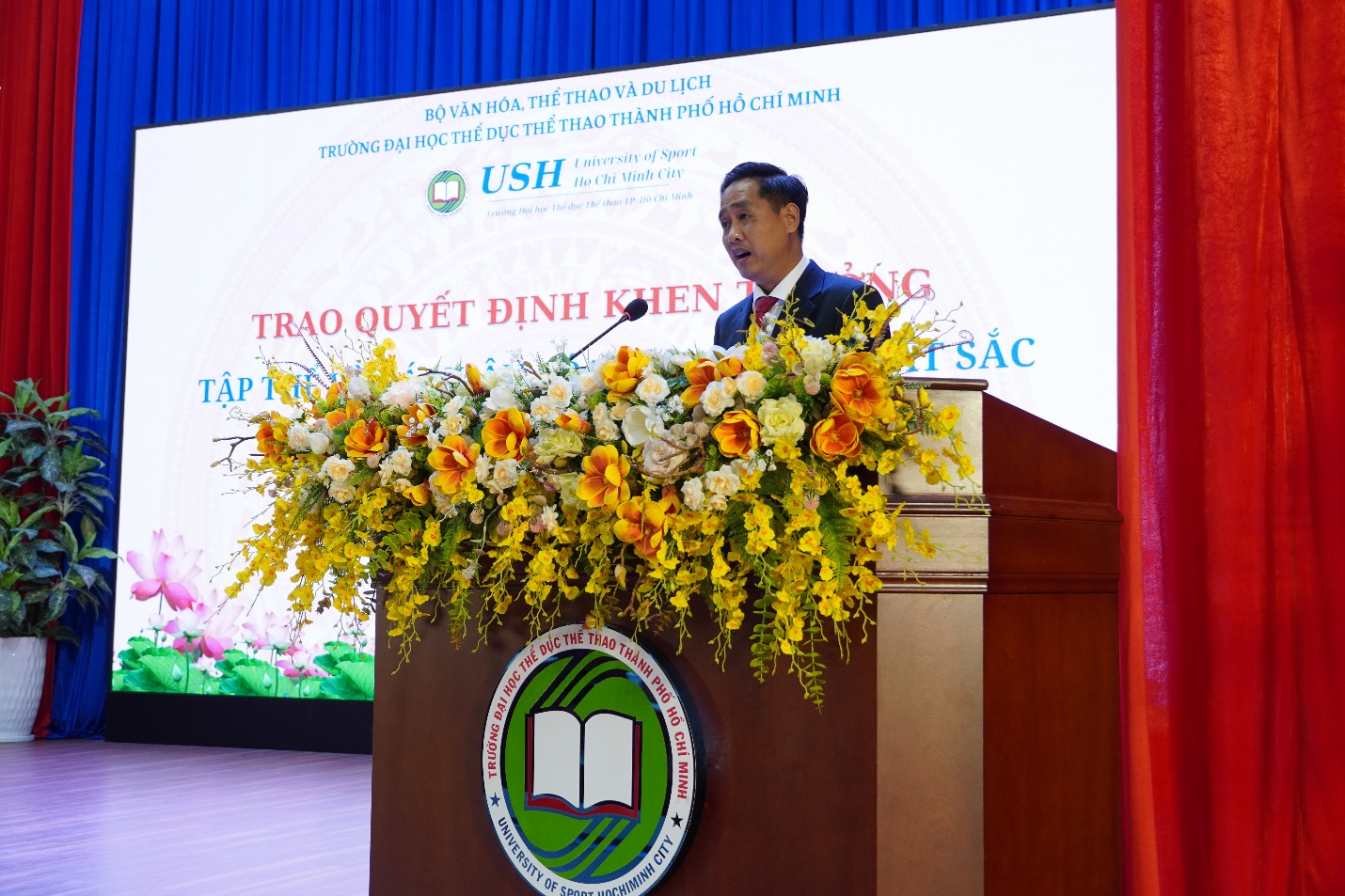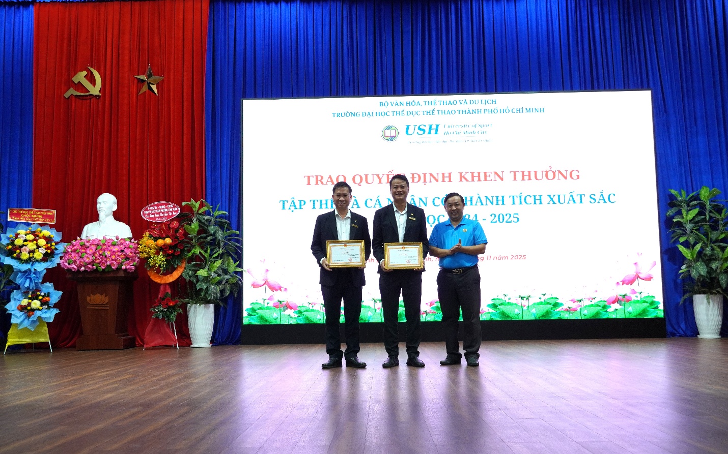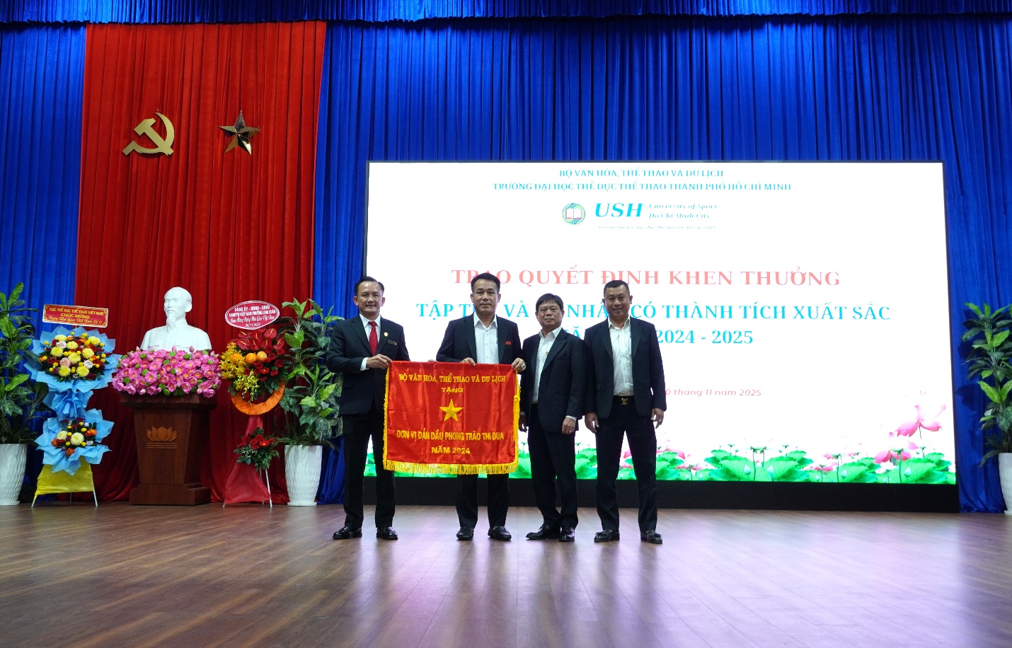 Nhiều phần thưởng cao quý đã được trao, gồm: 02 Cờ Thi đua của Bộ Văn hóa, Thể thao và Du lịch dành cho: Khoa Huấn luyện thể thao và Phòng Khảo thí và Đảm bảo chất lượng giáo dục; Bằng khen của Bộ trưởng Bộ Văn hóa, Thể thao và Du lịch cho các tập thể và cá nhân có thành tích xuất sắc; Giấy khen của Công an TP. Hồ Chí Minh cho các cá nhân có đóng góp tích cực trong công tác phối hợp, đảm bảo an ninh trật tự; Giấy khen của Hiệu trưởng Nhà trường dành cho Giảng viên đạt thành tích cao tại các đấu trường quốc tế trong năm qua.