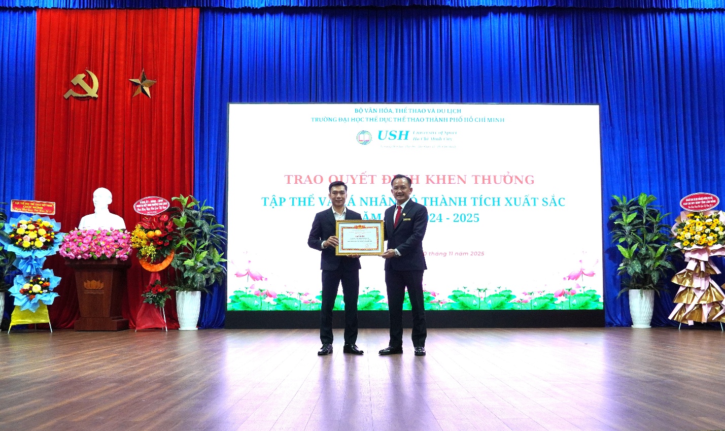 Sáng ngày 20/11/2025, trong không khí hân hoan của cả nước hướng về Ngày Nhà giáo Việt Nam, Trường Đại học Thể dục thể thao TP. Hồ Chí Minh Chúc mừng kỷ niệm 43 năm Ngày Nhà giáo Việt Nam (20/11/1982 – 20/11/2025) và Khen thưởng các tập thể, cá nhân có thành tích xuất sắc năm học 2024 – 2025. Buổi lễ có sự tham dự của Ban Giám hiệu Nhà trường, cùng toàn thể viên chức, giảng viên và người lao động.