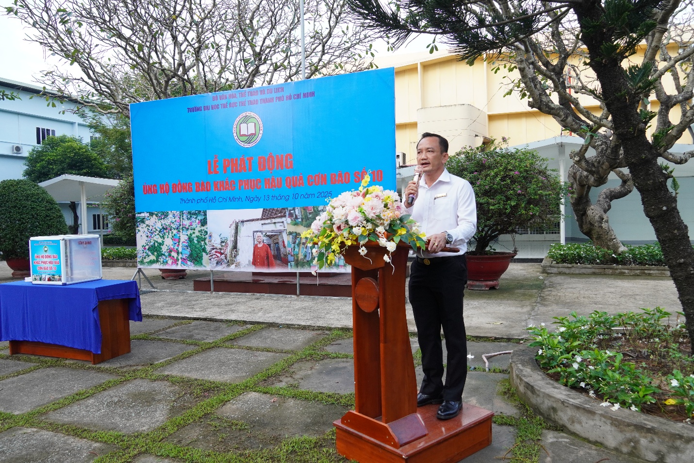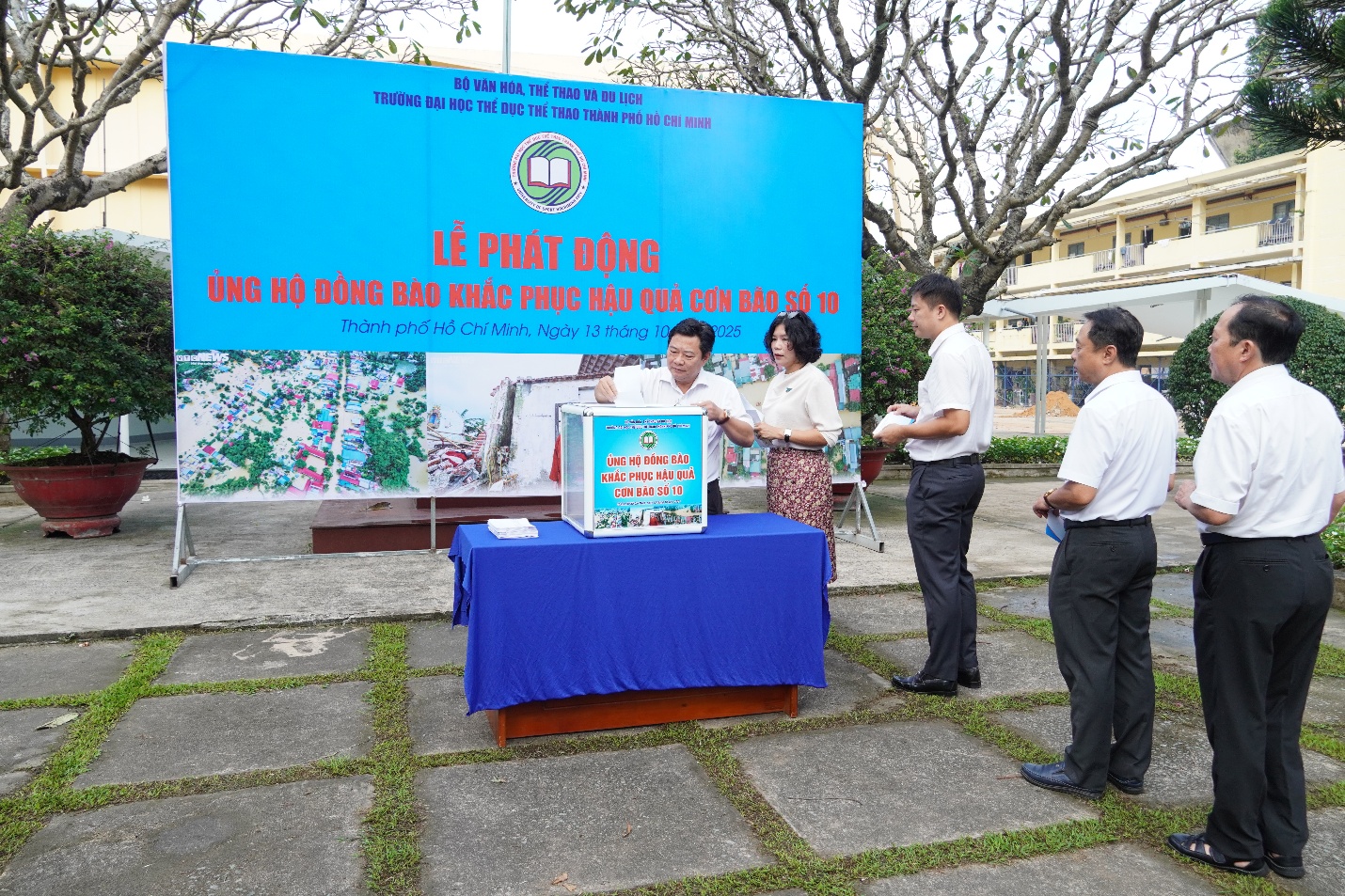 Hưởng ứng Lời kêu gọi của Đoàn Chủ tịch Ủy ban Trung ương Mặt trận Tổ quốc Việt Nam về vận động ủng hộ đồng bào khắc phục hậu quả cơn bão số 10 (Bão Bualoi), sáng ngày 13/10/2025, Trường Đại học Thể dục Thể thao TP. Hồ Chí Minh và Trung tâm Huấn luyện thể thao Quốc gia đã tổ chức lễ phát động quyên góp ủng hộ đồng bào bị thiệt hại do bão và lũ lụt gây ra.