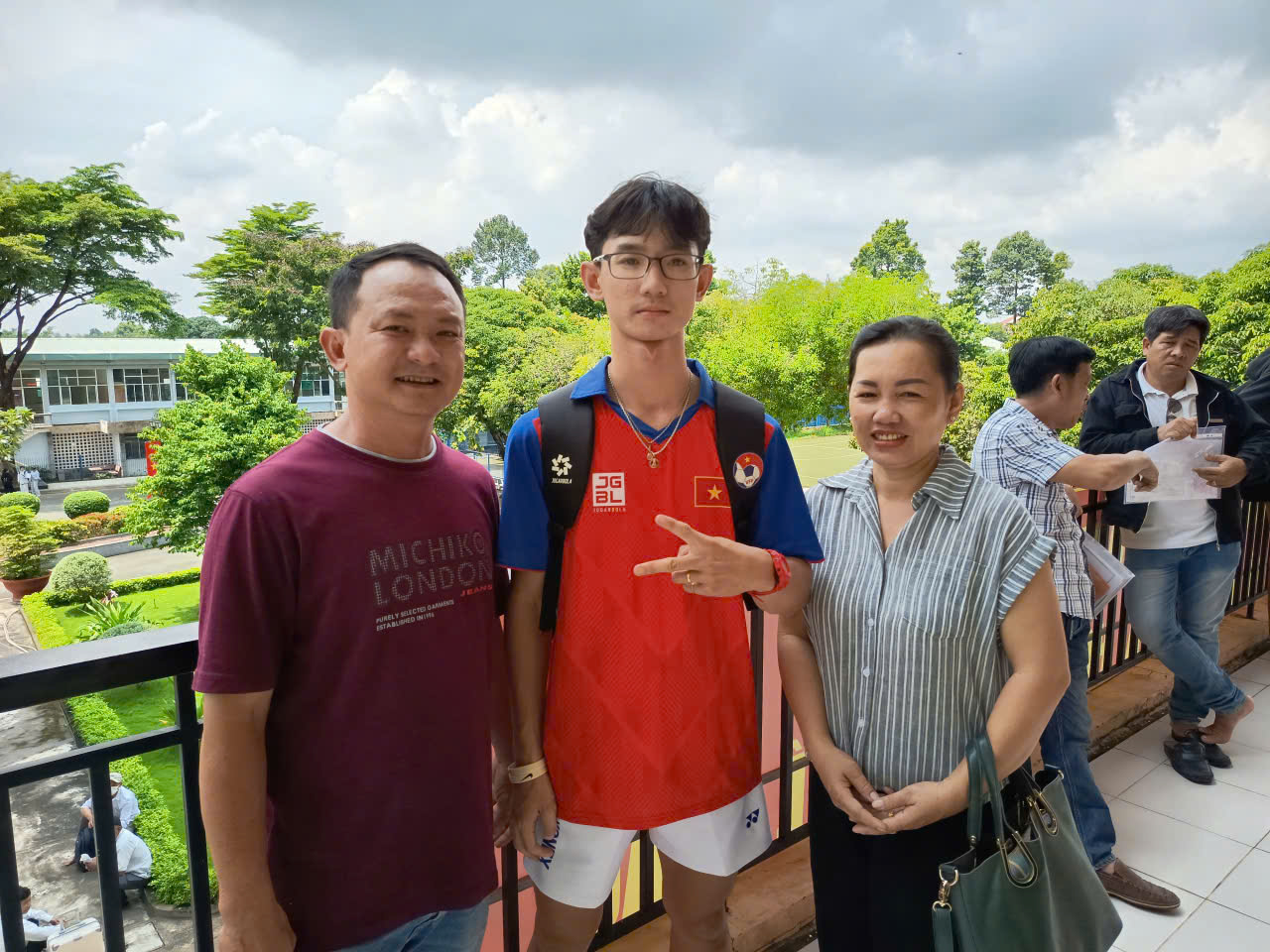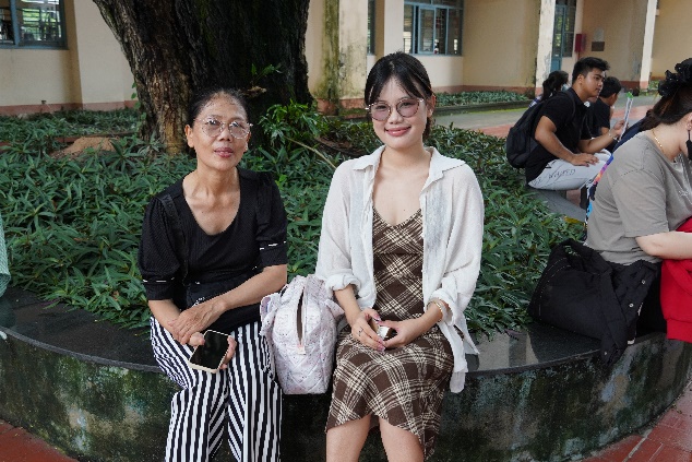 Anh Thái Thiện Thanh Liêm và chị Võ Phạm Huyền Trang Phụ huynh em Thái Trung Kỳ, Tân sinh viên Khoa Quản lý TDTT chia sẻ tại ngày nhập học