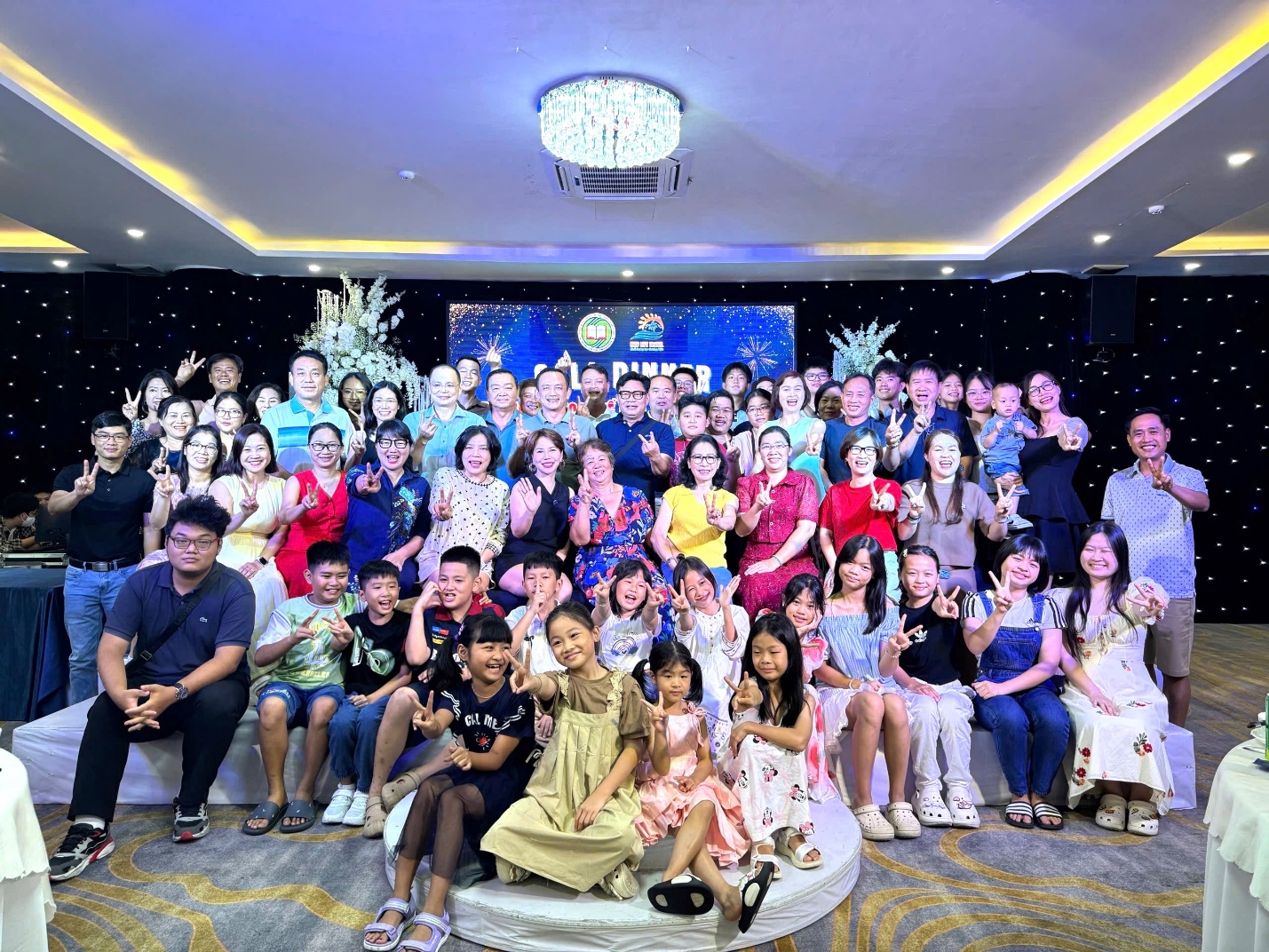 Ban lãnh đạo nhà trường chụp hình lưu niệm cùng các viên chức, người lao động và gia đình tại đêm gala