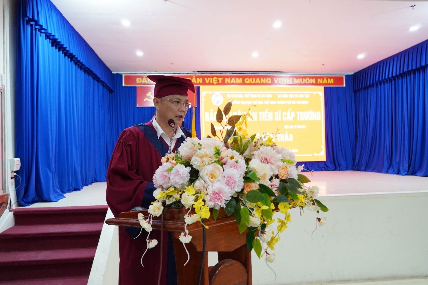 Sáng ngày 22 tháng 11 năm 2025, tại Trường Đại học Thể dục Thể thao Thành phố Hồ Chí Minh (USH), Nghiên cứu sinh (NCS) Lê Văn Thảo đã bảo vệ thành công Luận án Tiến sĩ cấp Trường, chuyên ngành Giáo dục học, Mã số 9140101.
