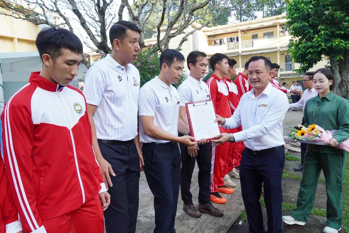 Ban Giám hiệu nhà trường trao quyết định cho đội tuyển