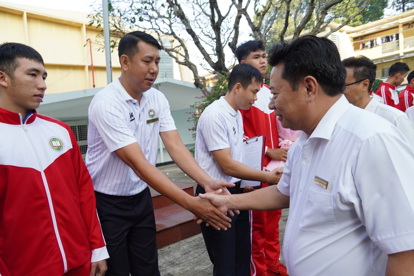 Ban Giám hiệu nhà trường trao quyết định cho đội tuyển và chúc mừng đội tuyển
