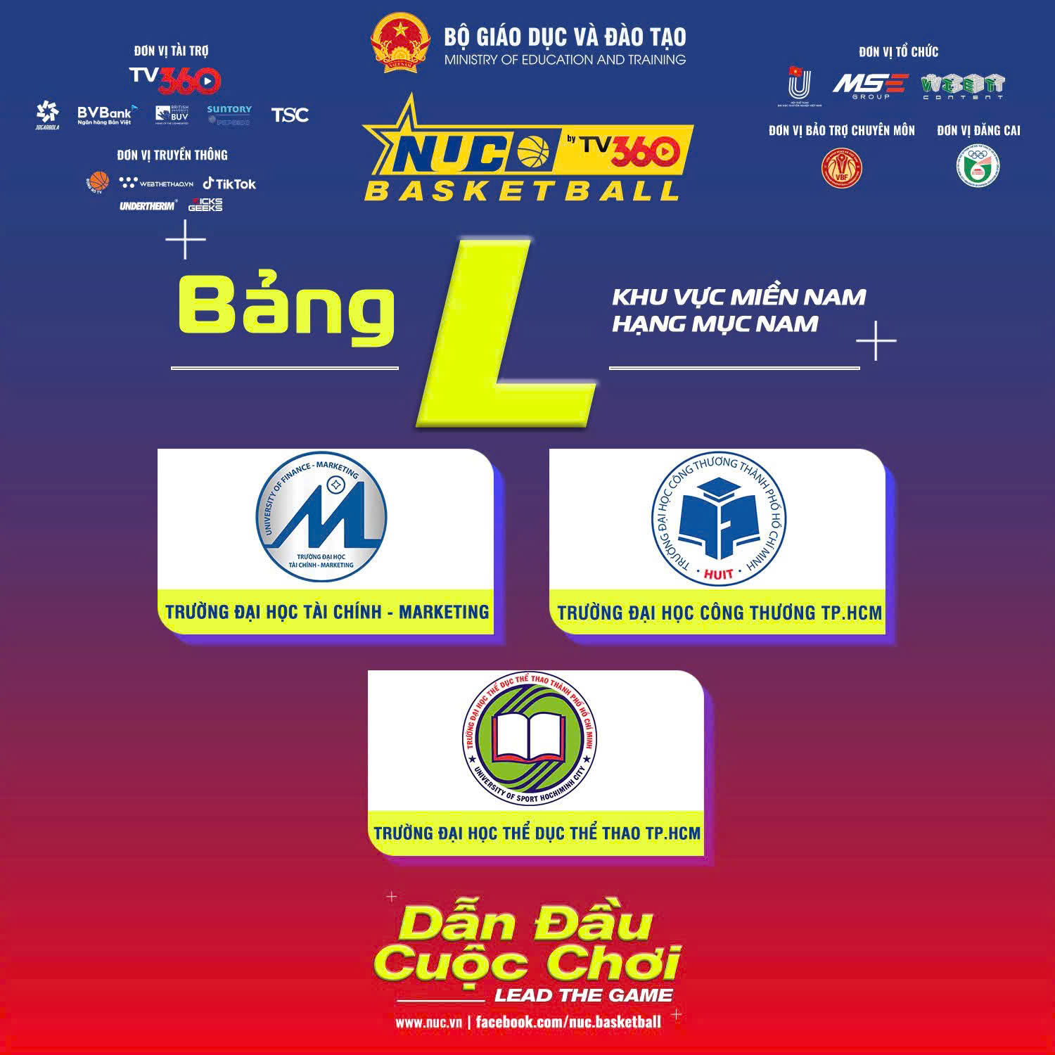 Phát biểu tại buổi lễ, đại diện Ban Giám hiệu nhà trường khẳng định: “Tham dự giải đấu không chỉ là cơ hội để sinh viên thể hiện bản lĩnh và tài năng, mà còn là dịp để Trường Đại học Thể dục Thể thao TP.HCM lan tỏa tinh thần thể thao học đường, góp phần xây dựng môi trường giáo dục năng động, sáng tạo và toàn diện.” Giải bóng rổ sinh viên toàn quốc – Cúp TV360 năm 2025 là sân chơi đỉnh cao do Bộ Giáo dục và Đào tạo, Công ty Cổ phần Giải trí Thể thao Max Sports (MSE) và Công ty Cổ phần Thương mại & Nội dung Số Việt (Vietcontent) phối hợp tổ chức. Giải quy tụ hơn 100 đội bóng nam – nữ đến từ các trường đại học, học viện và cao đẳng trên khắp cả nước, mang tinh thần “Lead The Game – Dẫn đầu cuộc chơi”. Theo kế hoạch, vòng loại khu vực miền Nam sẽ diễn ra từ 17 – 29/10/2025 tại Nhà thi đấu Trường Đại học Sư phạm Thể dục Thể thao TP.HCM, quy tụ 51 đội bóng đại diện cho các trường đại học và cao đẳng trong khu vực. Các đội được chia thành 17 bảng đấu, mỗi bảng gồm 3 đội, thi đấu vòng tròn chọn đội nhất bảng vào vòng knock-out – biến mỗi trận đấu trở thành một “chung kết” thực thụ. Đội tuyển Đại học Thể dục Thể thao TP.HCM được xếp ở Bảng L, cùng với Đại học Tài chính – Marketing và Đại học Công Thương TP.HCM.